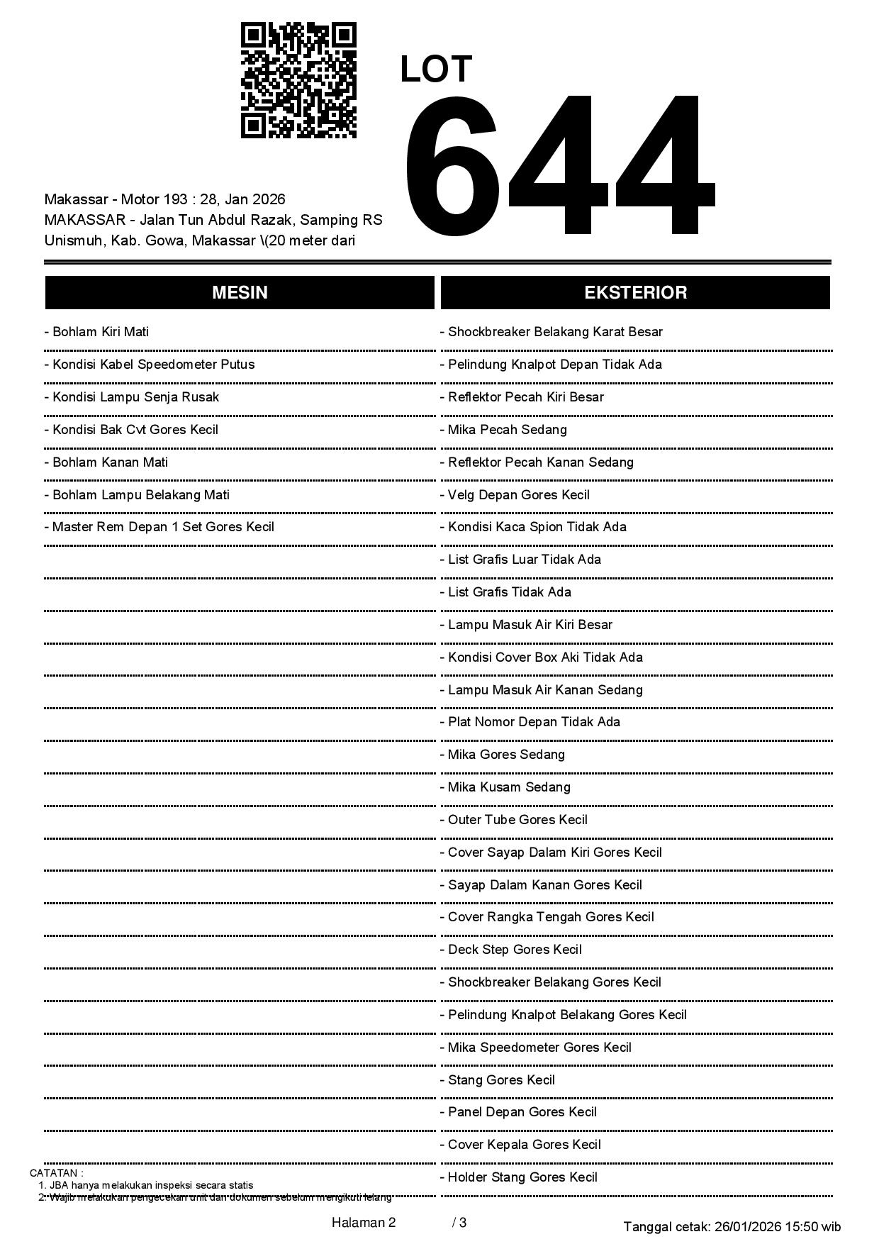 1. Peserta lelang wajib cek unit & dokumen