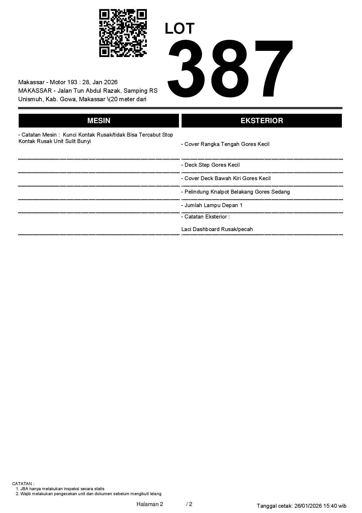 2. Peserta lelang wajib cek unit & dokumen