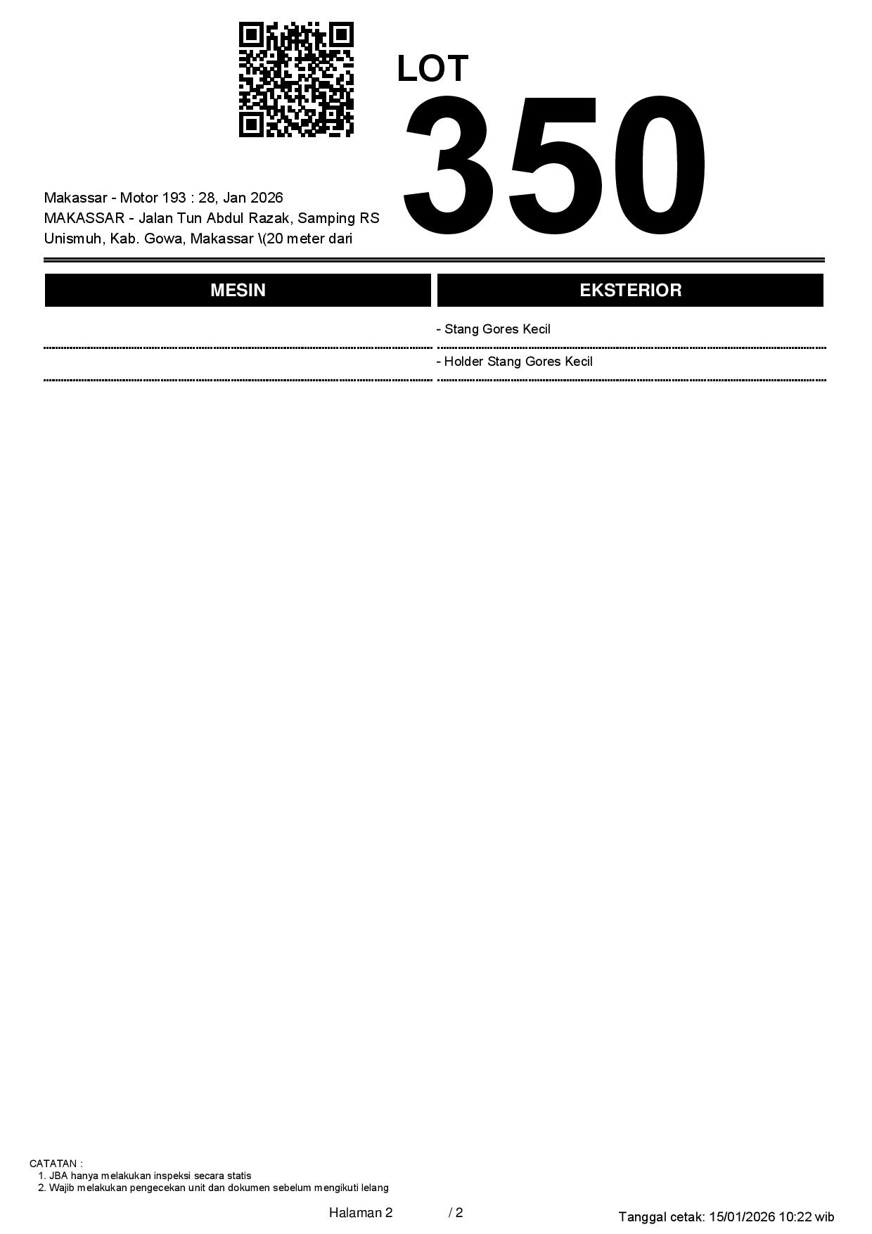 2. Peserta lelang wajib cek unit & dokumen