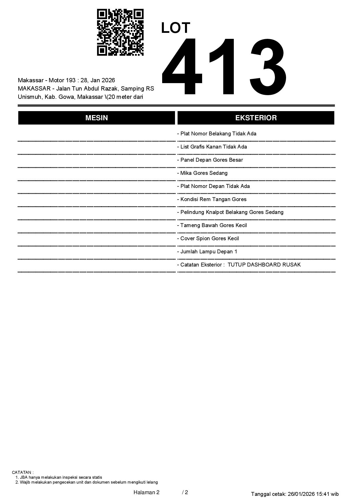 2. Peserta lelang wajib cek unit & dokumen