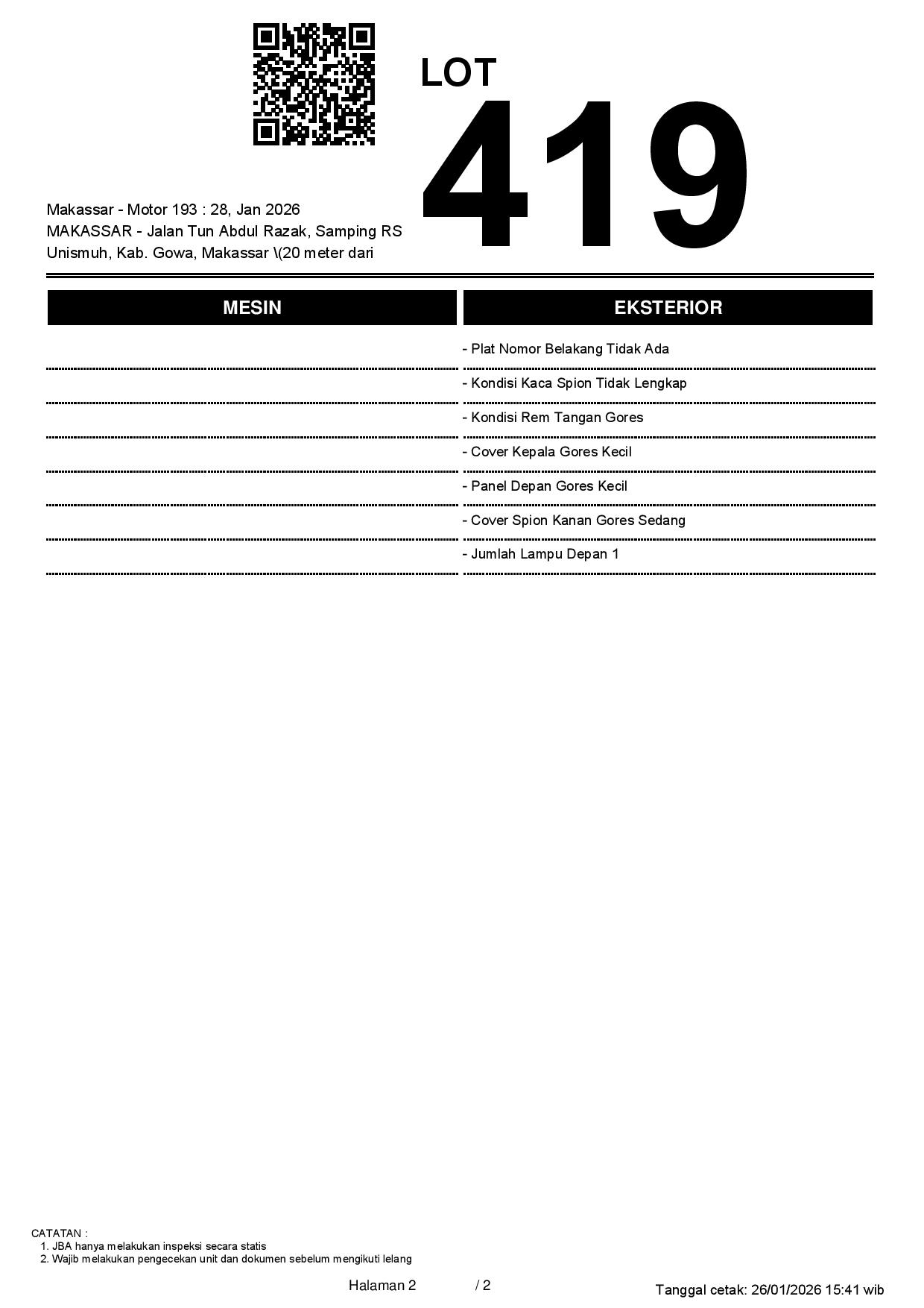 2. Peserta lelang wajib cek unit & dokumen