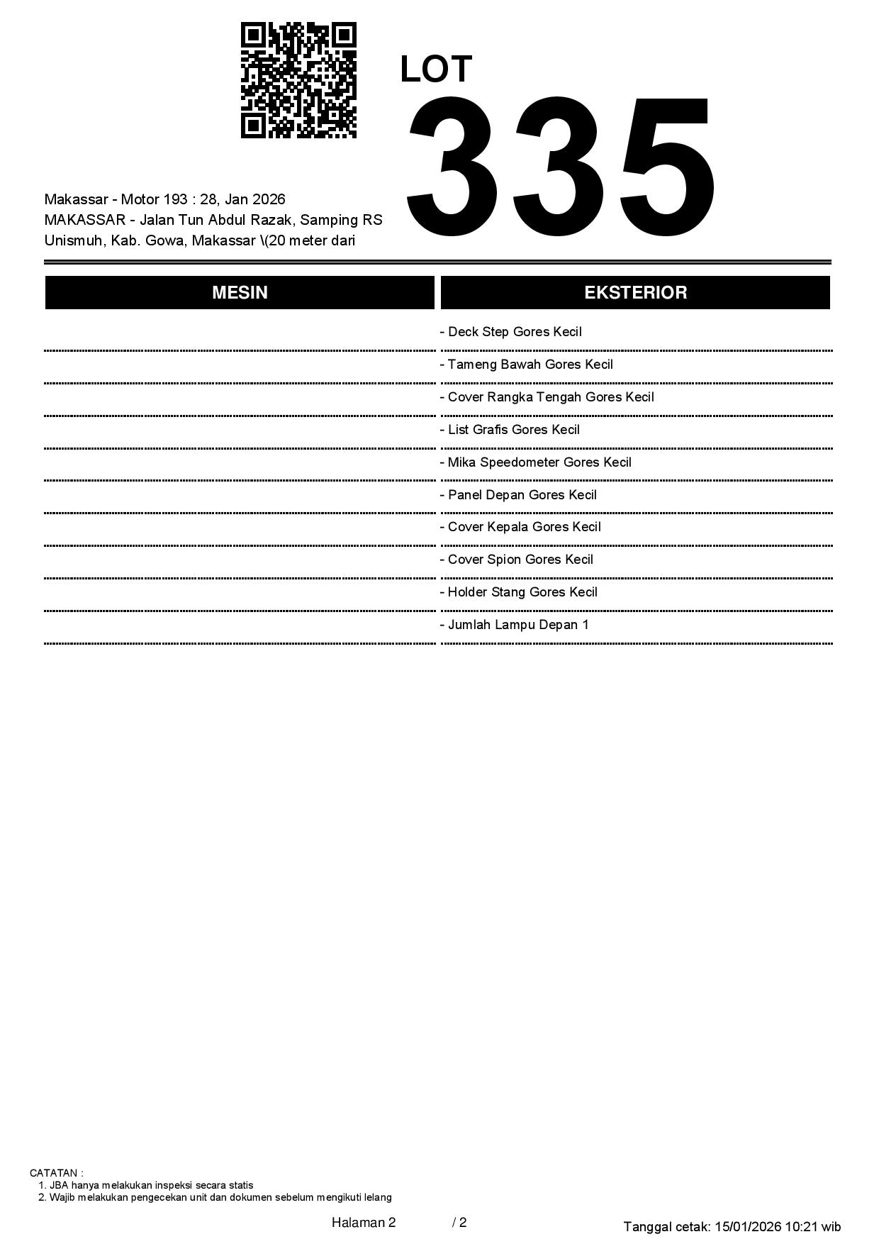 2. Peserta lelang wajib cek unit & dokumen