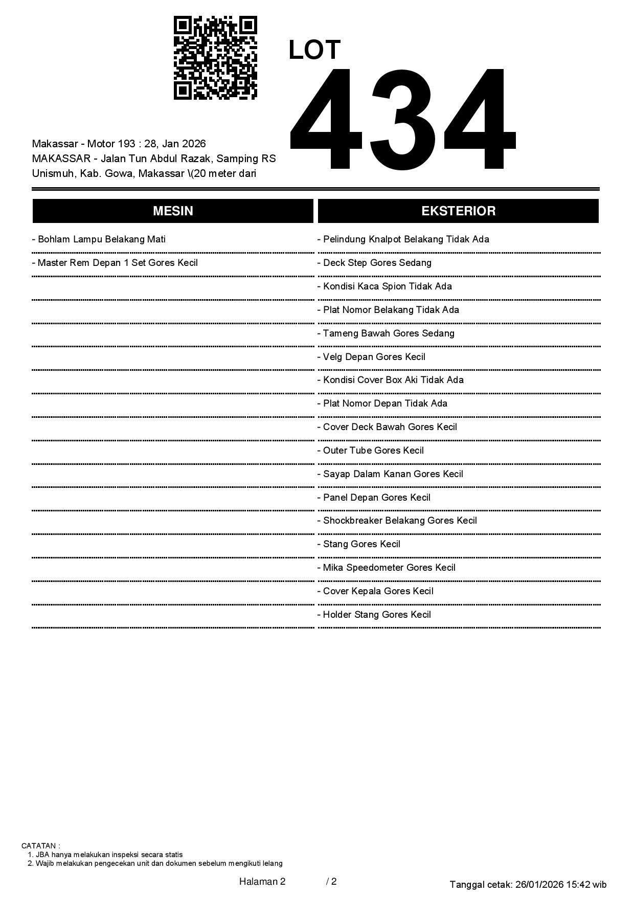 2. Peserta lelang wajib cek unit & dokumen