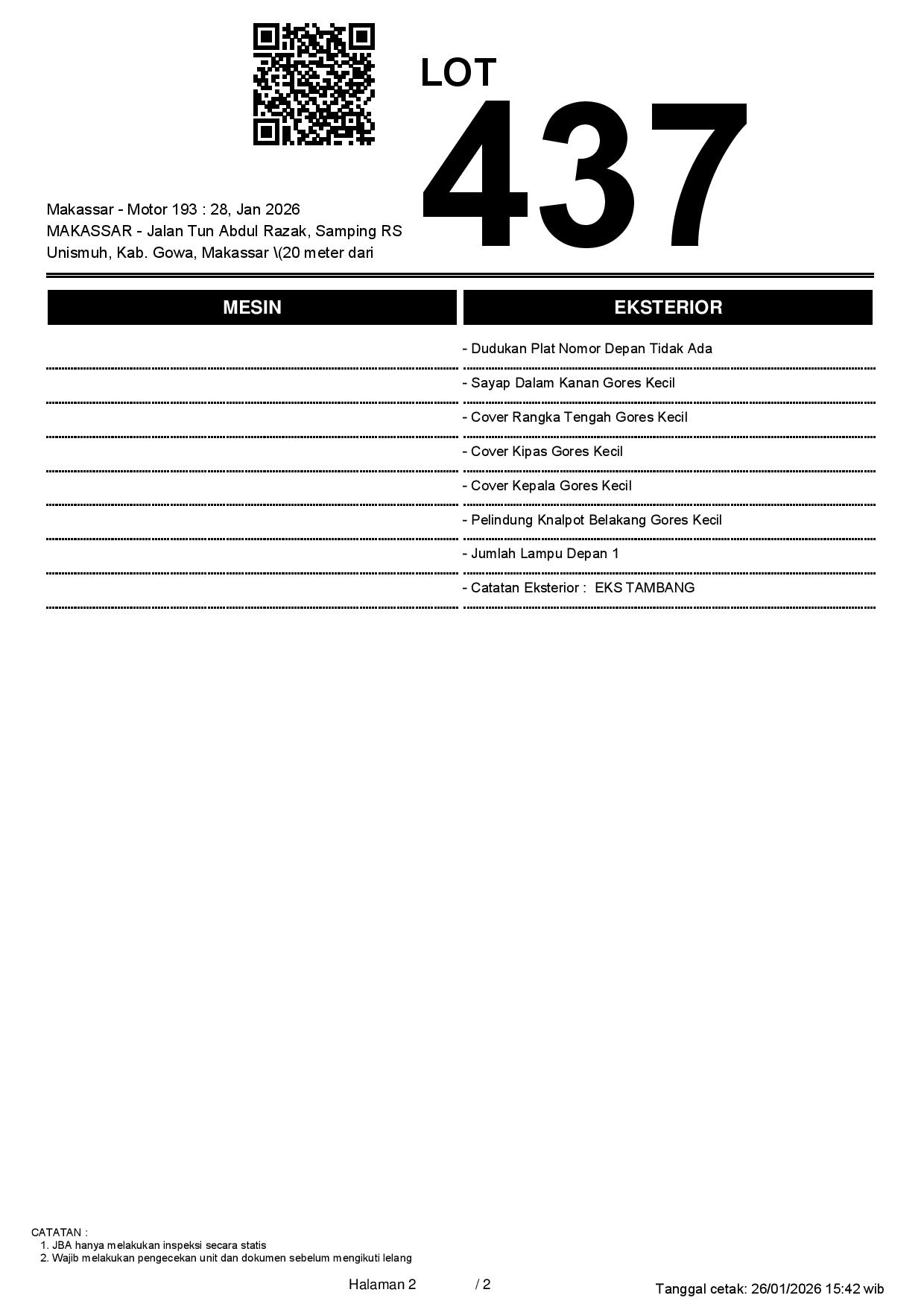 2. Peserta lelang wajib cek unit & dokumen