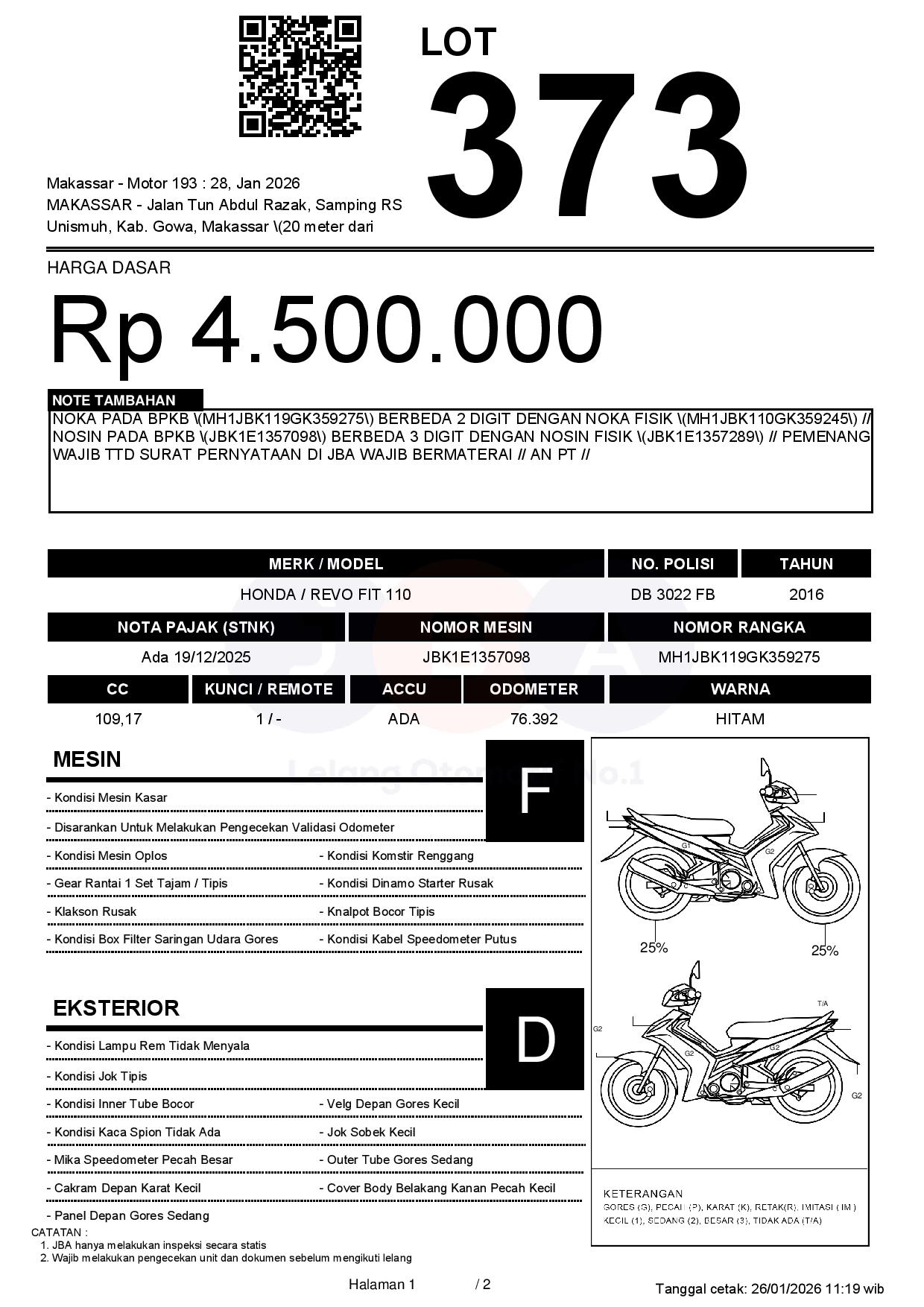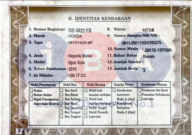 NOKA PADA BPKB (MH1JBK119GK359275) BERBEDA 2 DIGIT DENGAN NOKA FISIK (MH1JBK110GK359245) // NOSIN PADA BPKB (JBK1E1357098) BERBEDA 3 DIGIT DENGAN NOSIN FISIK (JBK1E1357289) // PEMENANG WAJIB TTD SURAT PERNYATAAN DI JBA WAJIB BERMATERAI // AN PT //