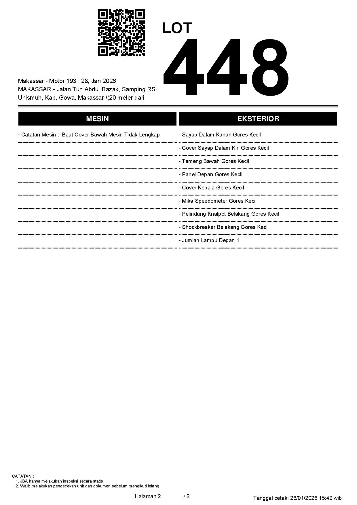 2. Peserta lelang wajib cek unit & dokumen