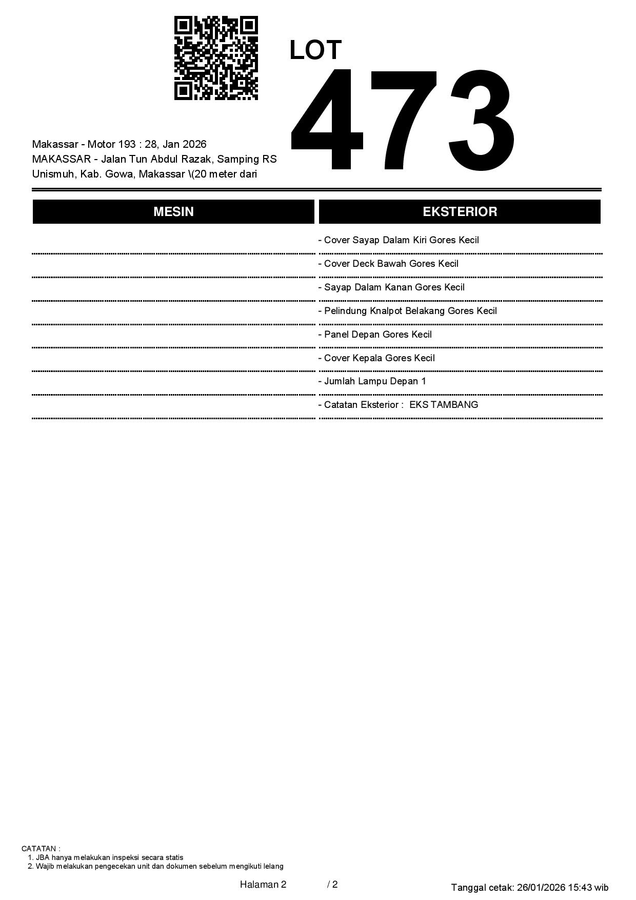 2. Peserta lelang wajib cek unit & dokumen