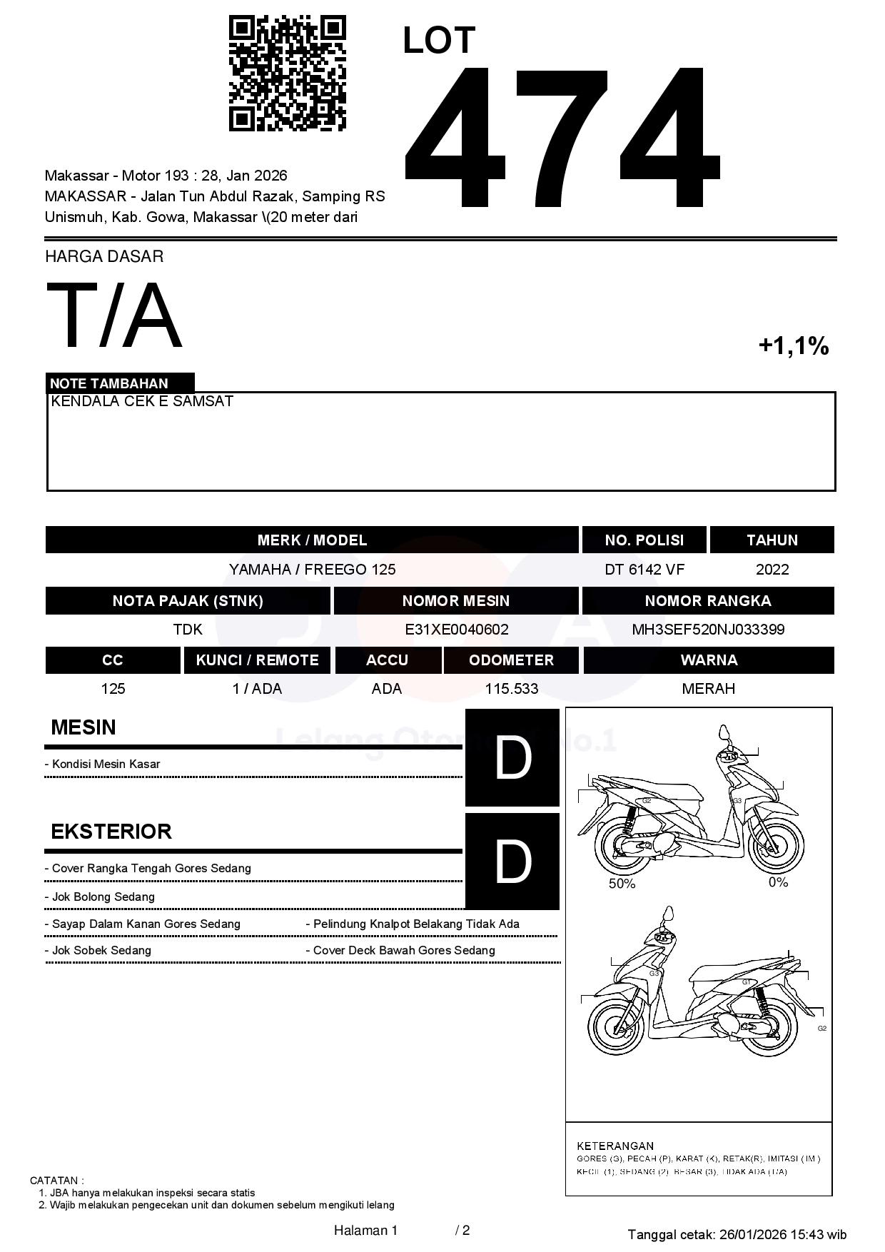 Tanggal Lelang: 28/01/2026 13:00 | WITA