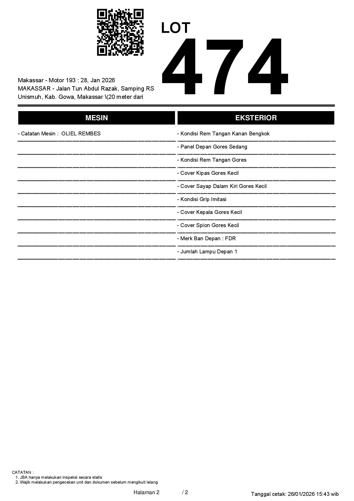 2. Peserta lelang wajib cek unit & dokumen