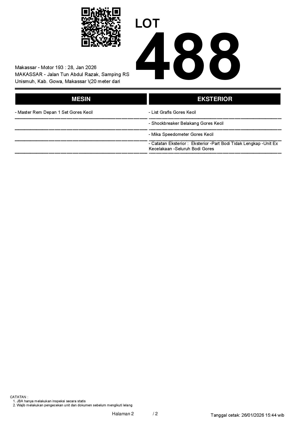 2. Peserta lelang wajib cek unit & dokumen