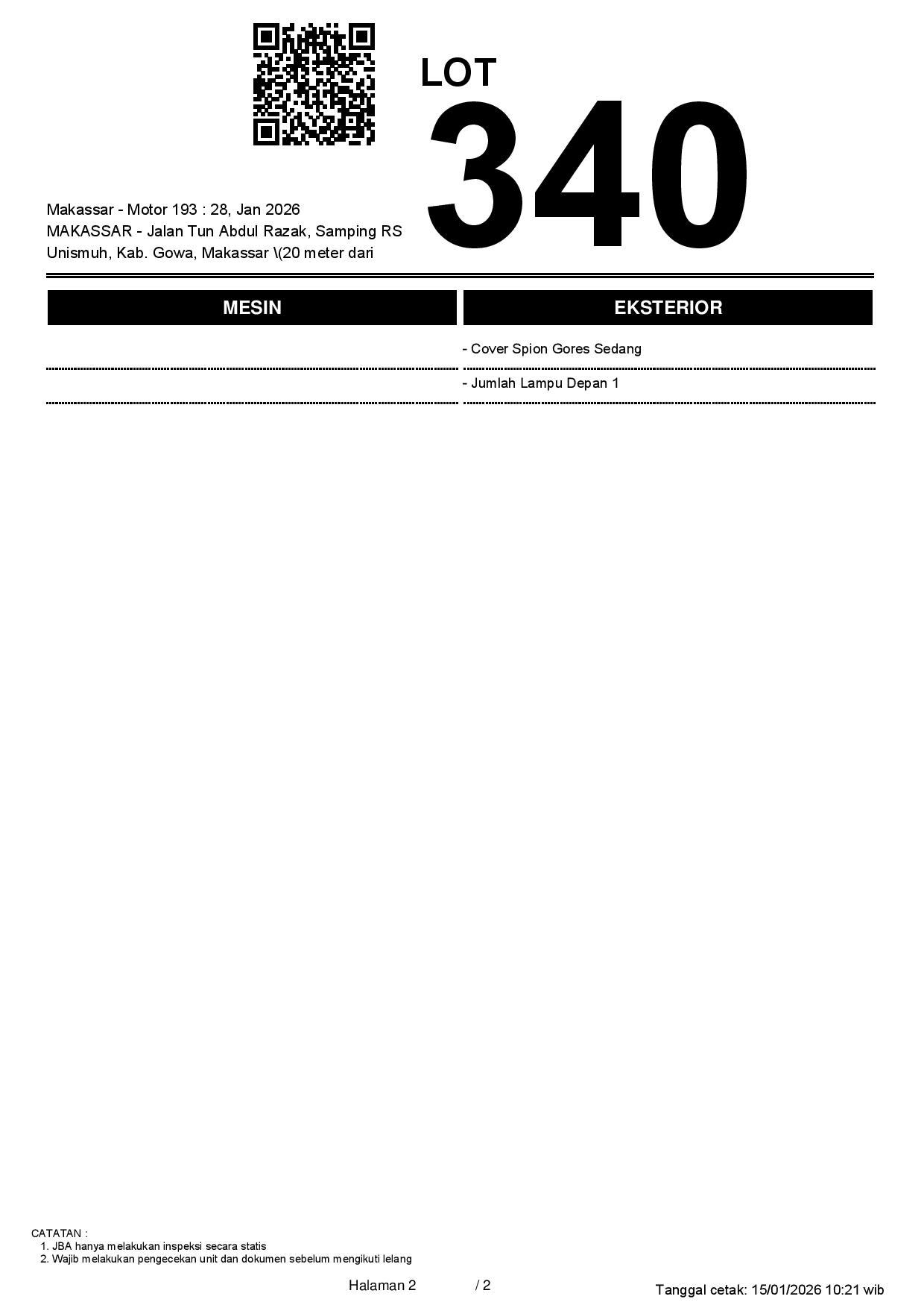 2. Peserta lelang wajib cek unit & dokumen
