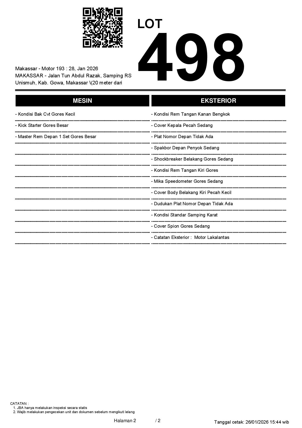 2. Peserta lelang wajib cek unit & dokumen