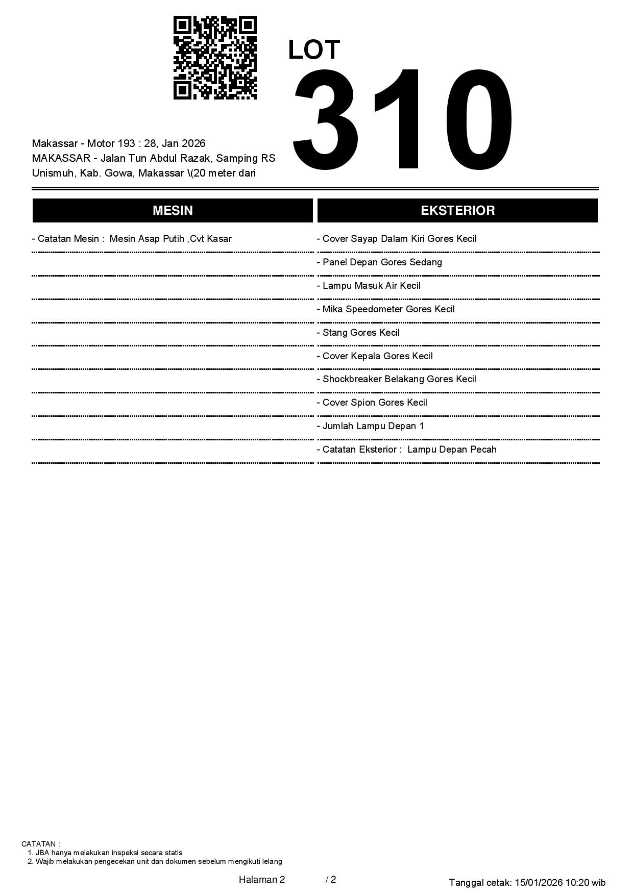 2. Peserta lelang wajib cek unit & dokumen