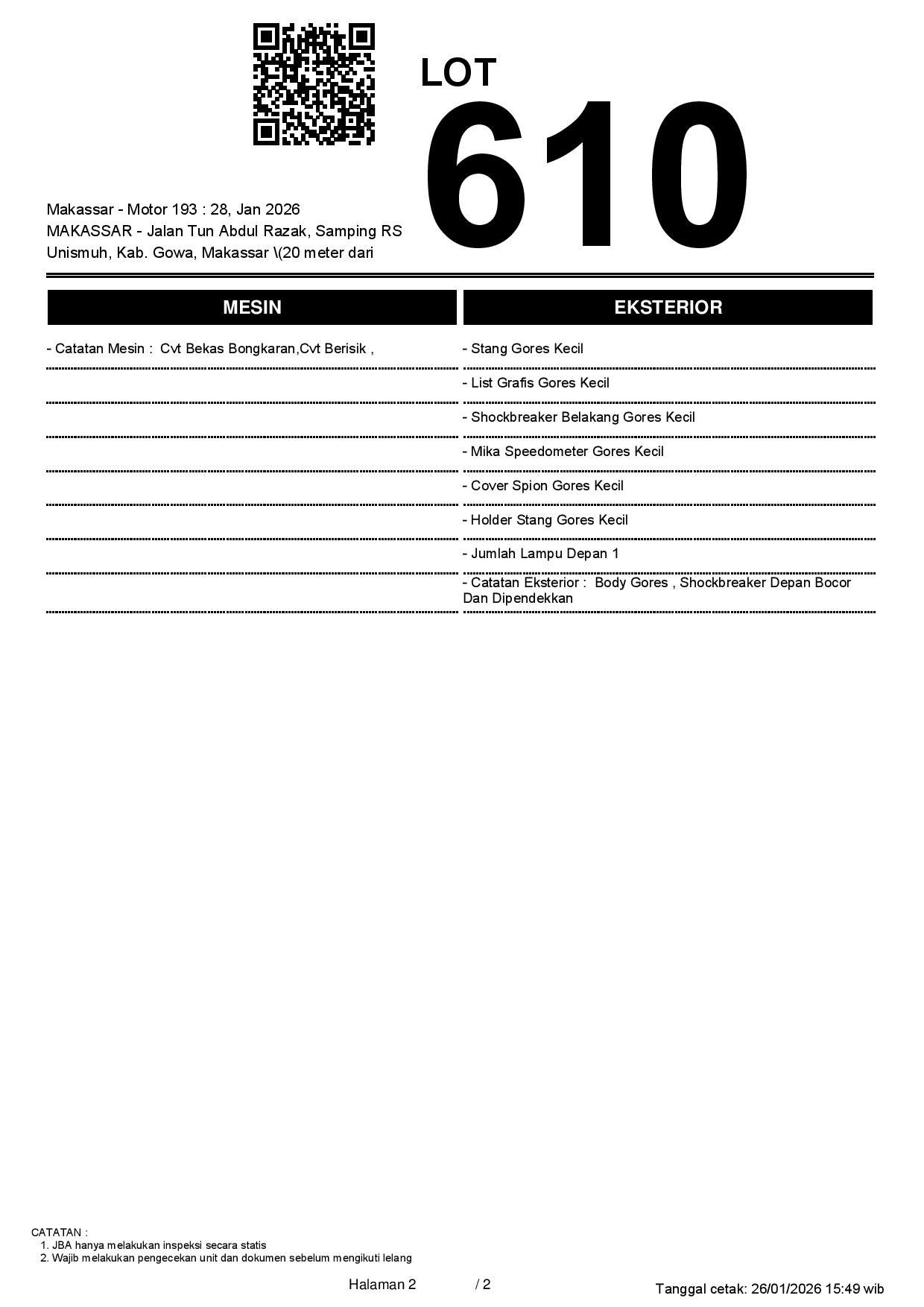 2. Peserta lelang wajib cek unit & dokumen