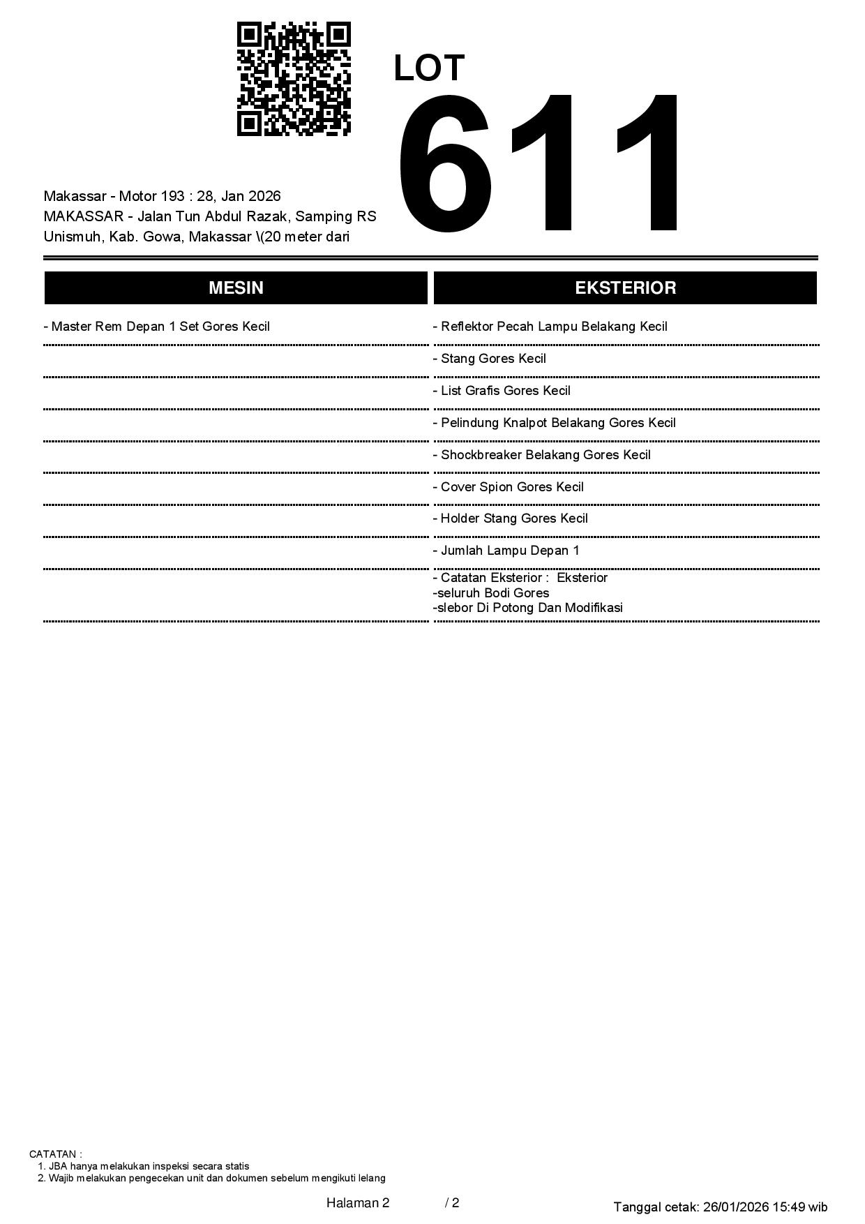 2. Peserta lelang wajib cek unit & dokumen