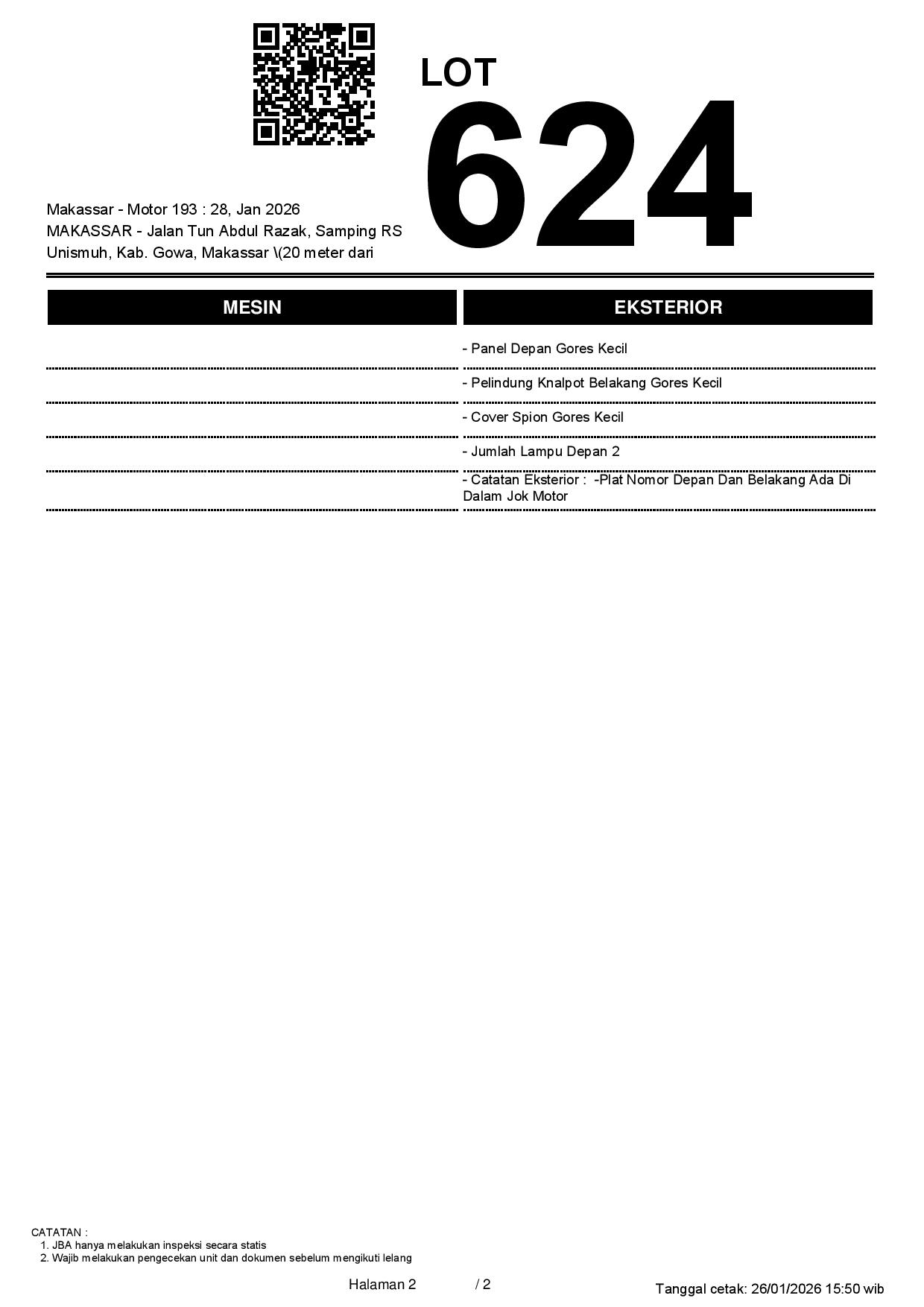 2. Peserta lelang wajib cek unit & dokumen