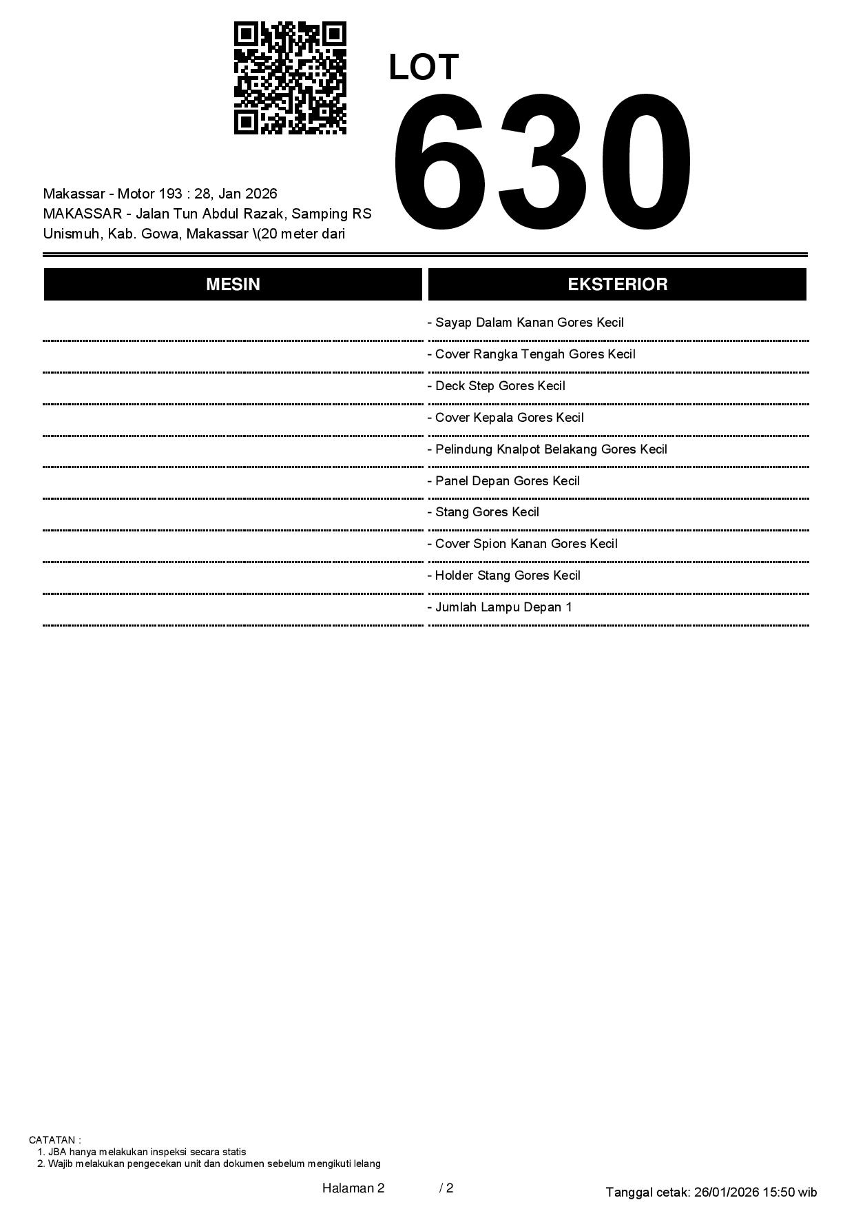 2. Peserta lelang wajib cek unit & dokumen