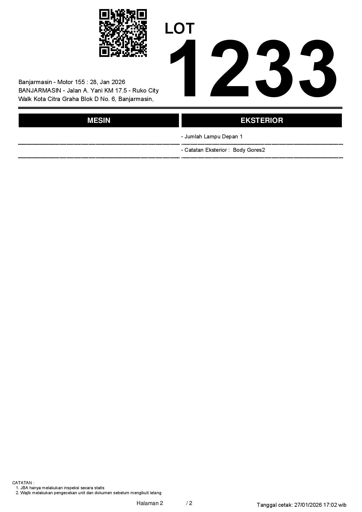 Tanggal Lelang: 28/01/2026 13:00 | WITA