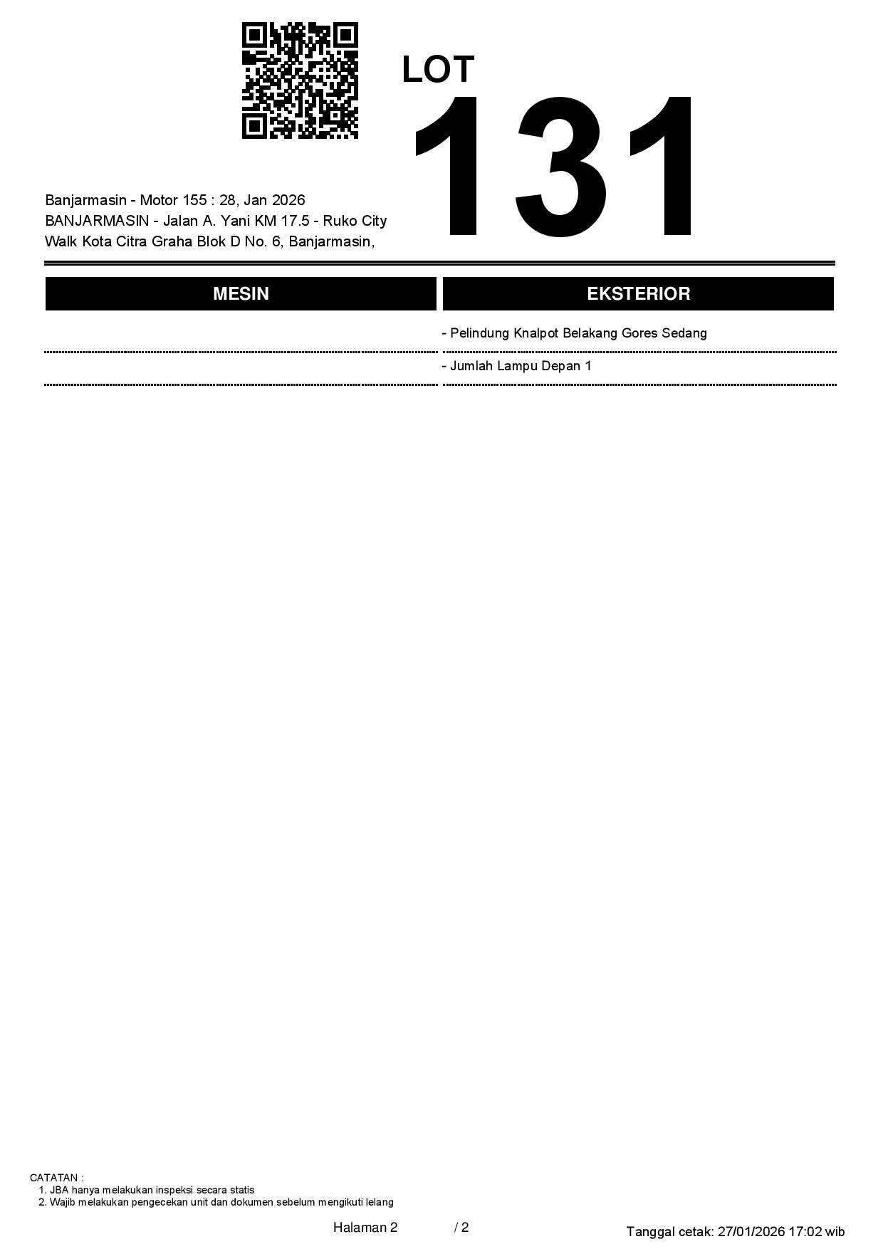 Tanggal Lelang: 28/01/2026 13:00 | WITA