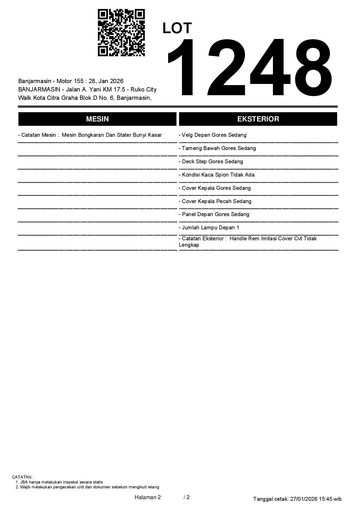 2. Peserta lelang wajib cek unit & dokumen