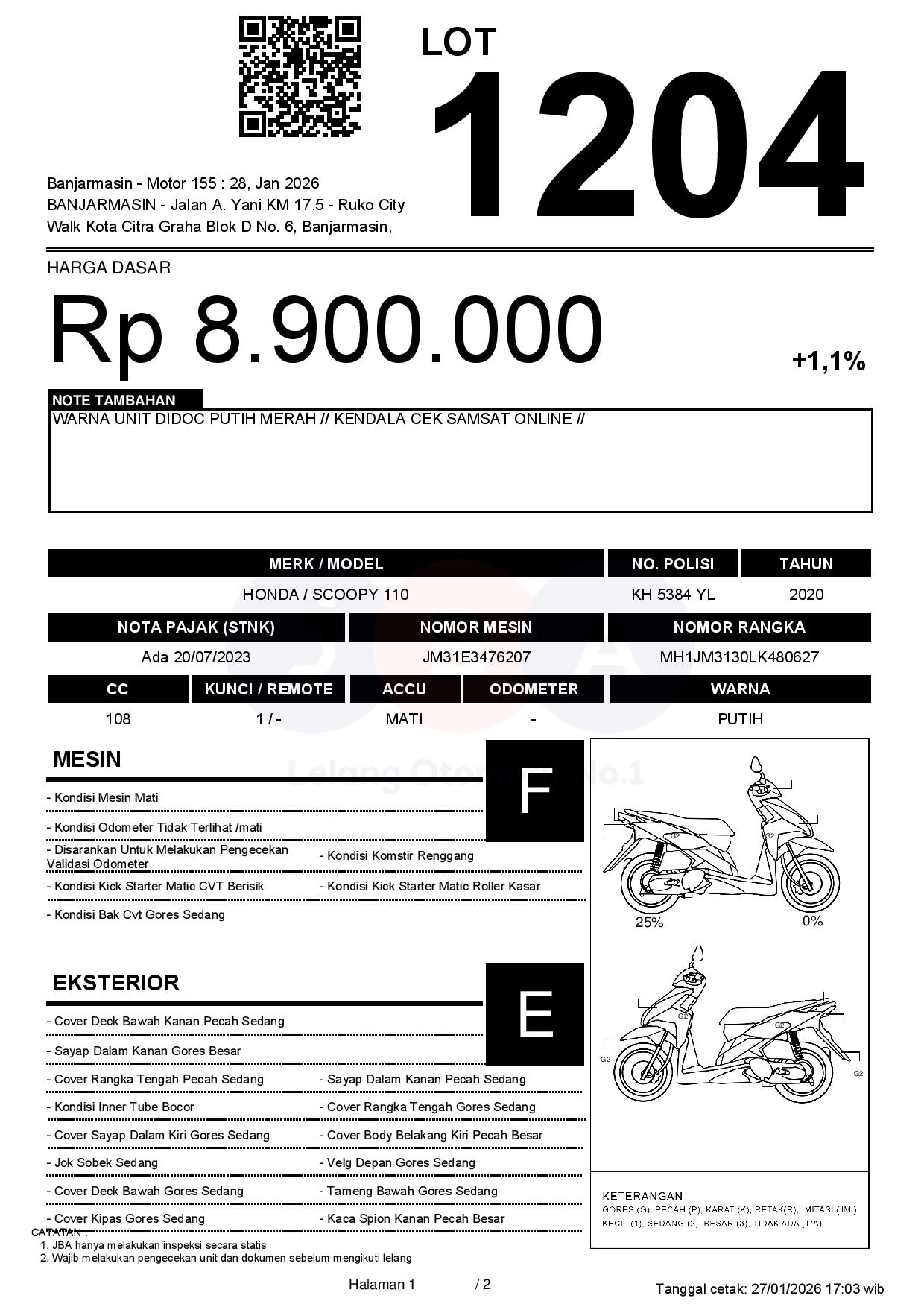 Tanggal Lelang: 28/01/2026 13:00 | WITA