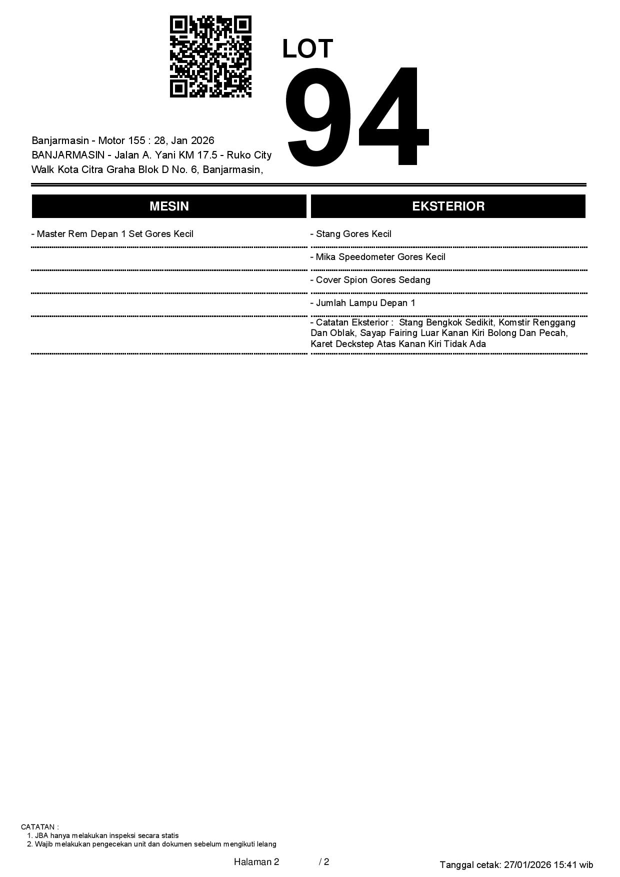 2. Peserta lelang wajib cek unit & dokumen