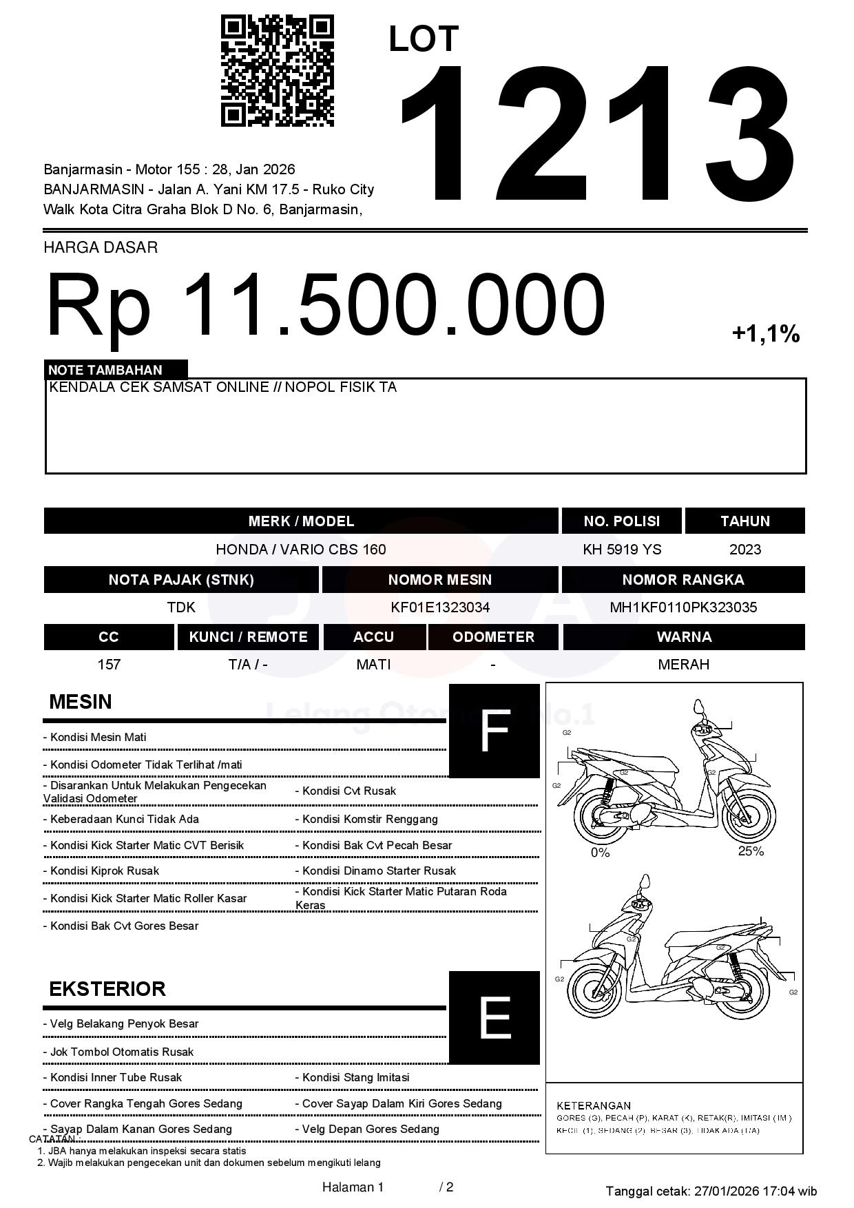 Tanggal Lelang: 28/01/2026 13:00 | WITA