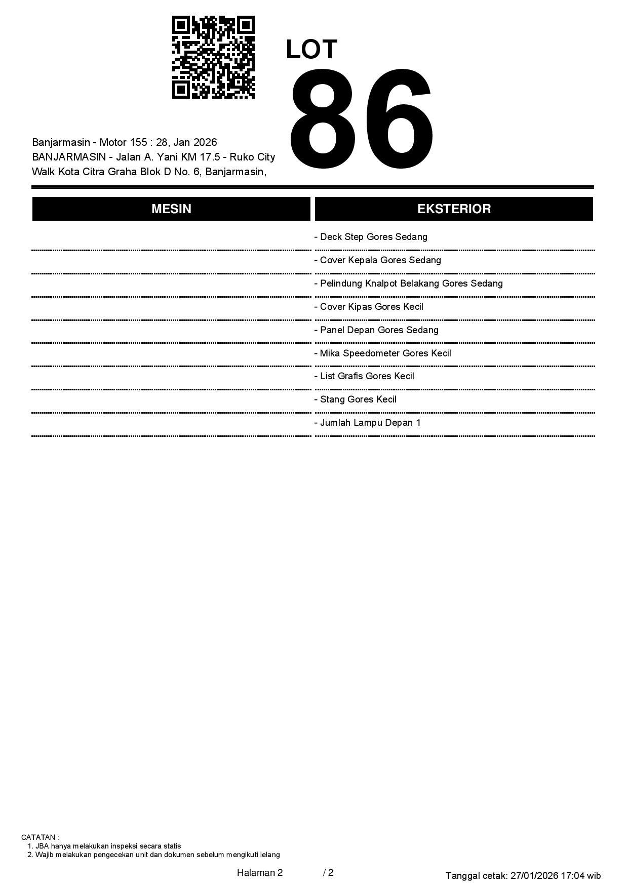2. Peserta lelang wajib cek unit & dokumen
