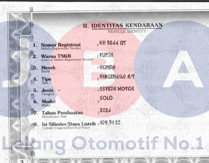 PENULISAN CC DI STNK 109,51 // PENULISAN CC DI NOTICE PAJAK 109 // KENDALA CEK SAMSAT ONLINE // NOPOL FISIK TA // NOSIN KARAT // PEMENANG LELANG WAJIB MENANDATANGANI SURAT PERNYATAAN BERMATERAI DI JBA // WARNA DI DOC BIRU HITAM //