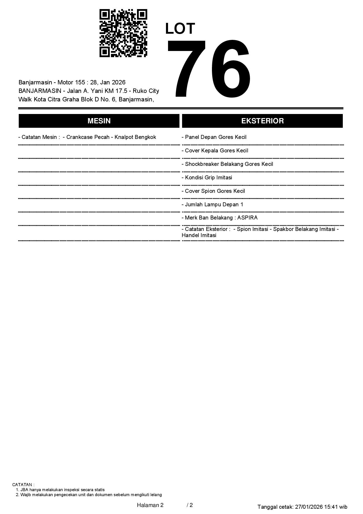 2. Peserta lelang wajib cek unit & dokumen