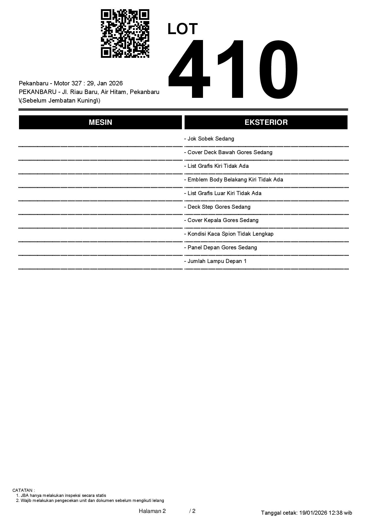 1. Peserta lelang wajib cek unit & dokumen