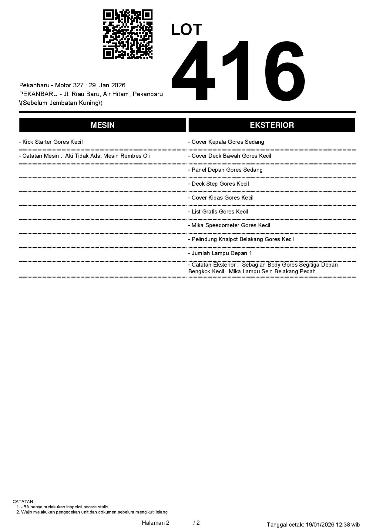 1. Peserta lelang wajib cek unit & dokumen
