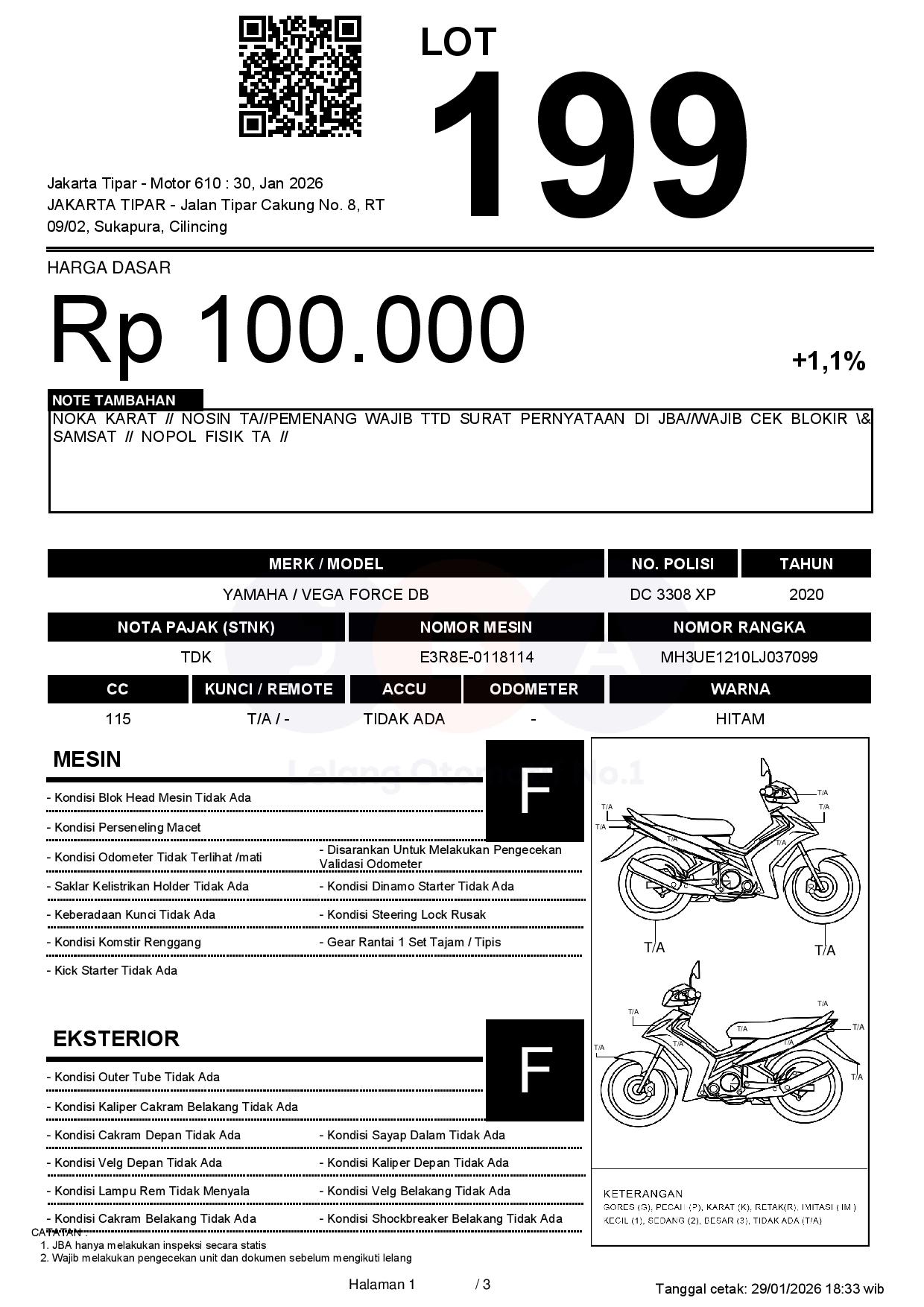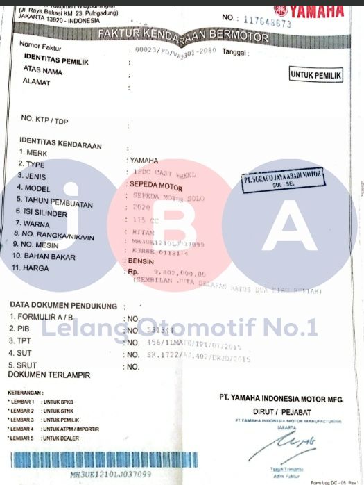 NOKA KARAT // NOSIN TA//PEMENANG WAJIB TTD SURAT PERNYATAAN DI JBA//WAJIB CEK BLOKIR & SAMSAT // NOPOL FISIK TA //