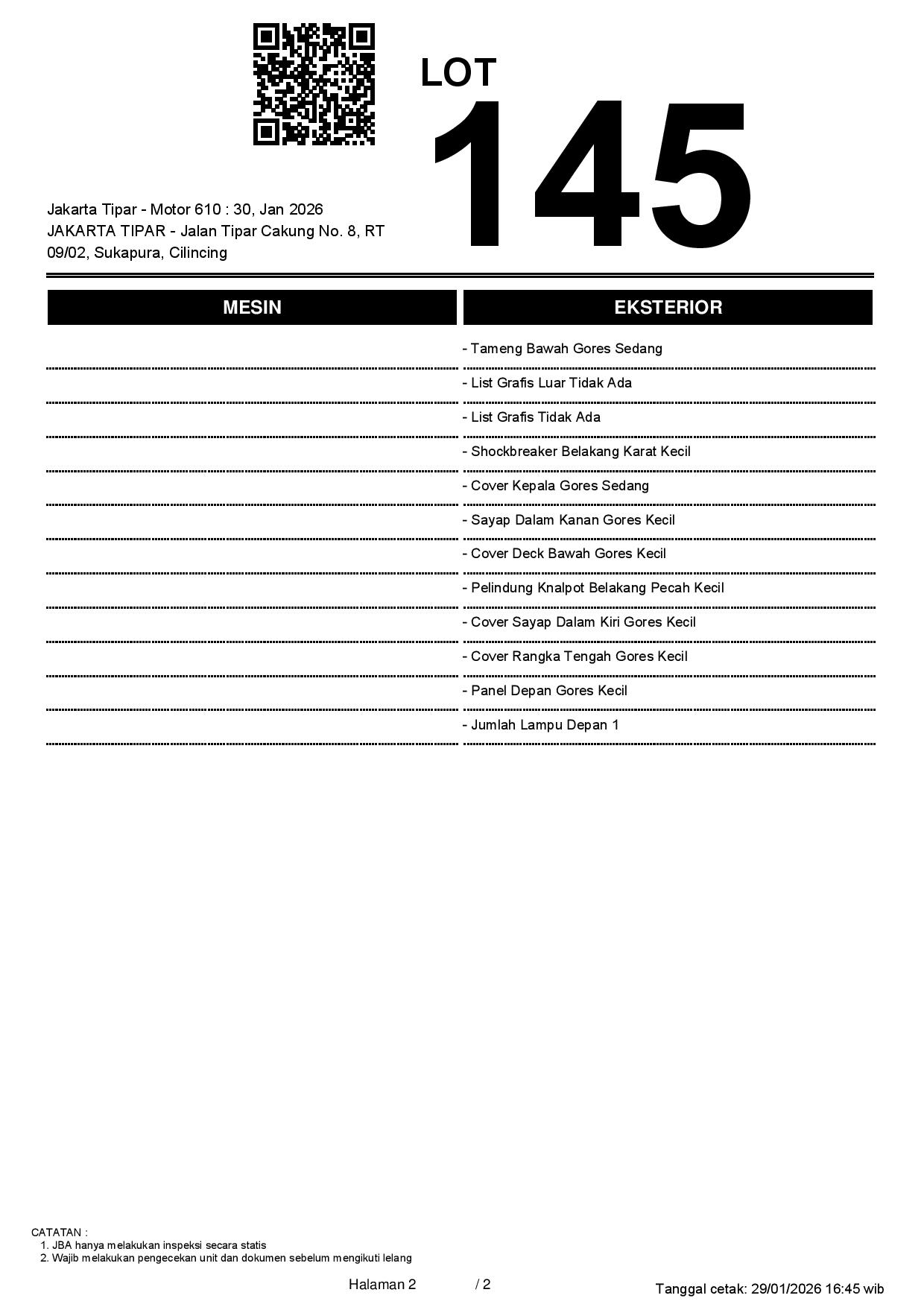 1. Peserta lelang wajib cek unit & dokumen