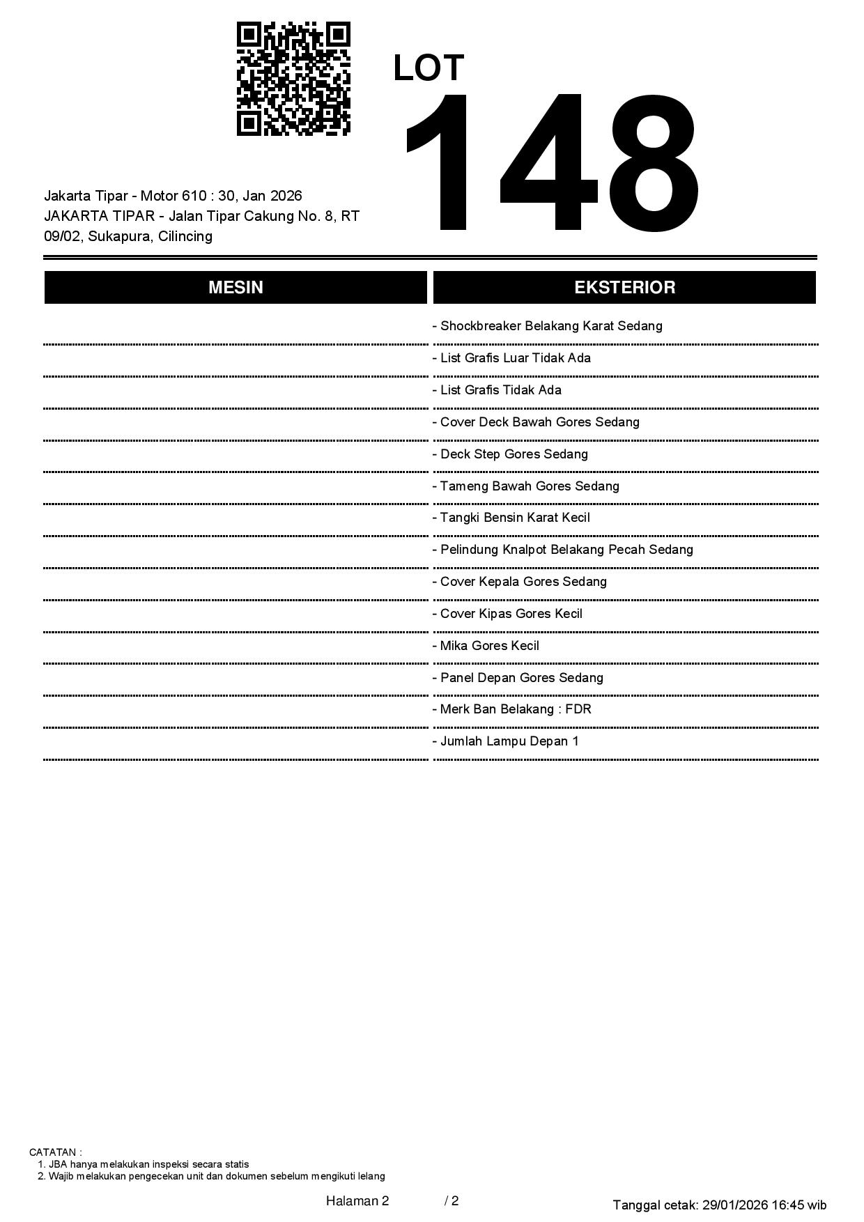 Tanggal Lelang: 30/01/2026 13.5:00 | WIB