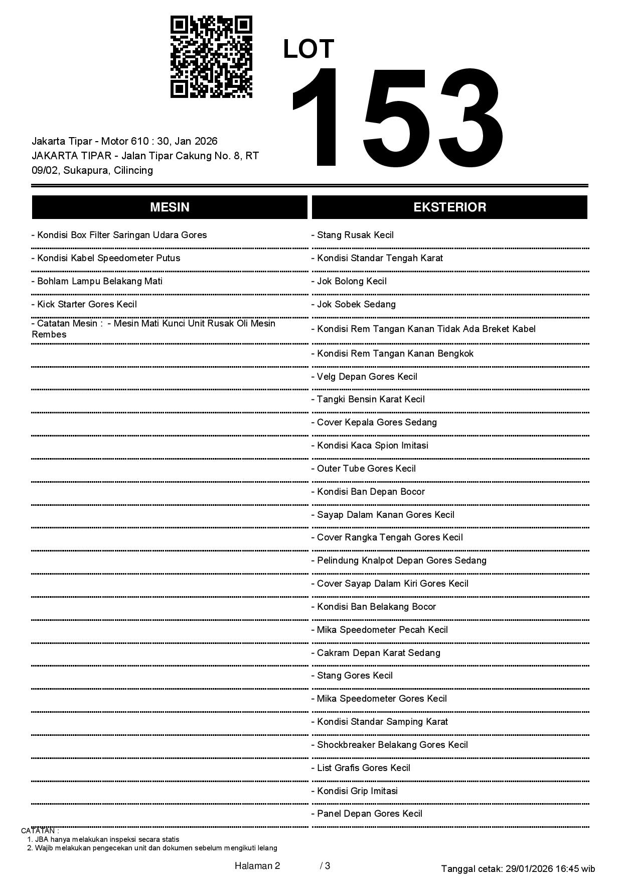 1. Peserta lelang wajib cek unit & dokumen
