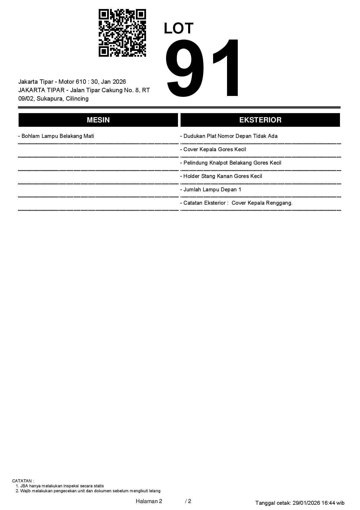 2. Peserta lelang wajib cek unit & dokumen
