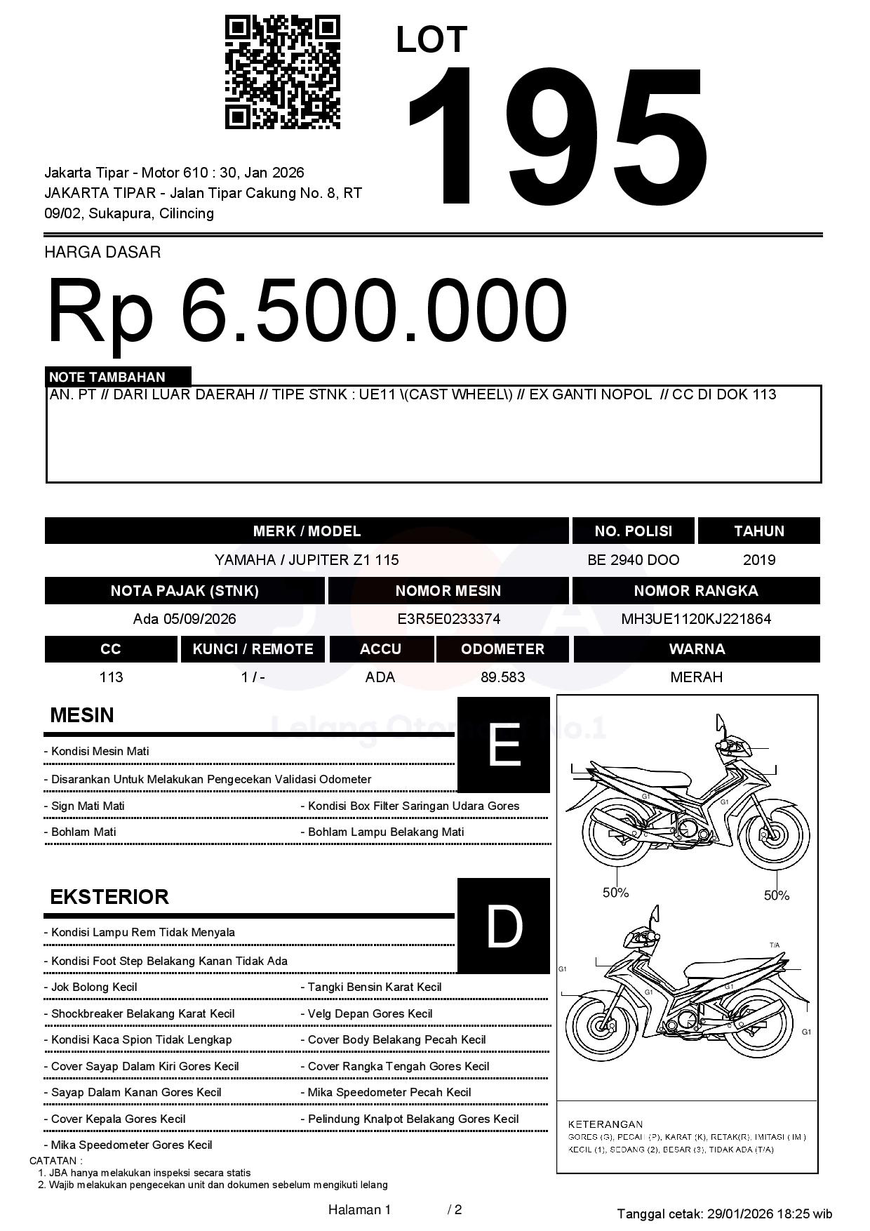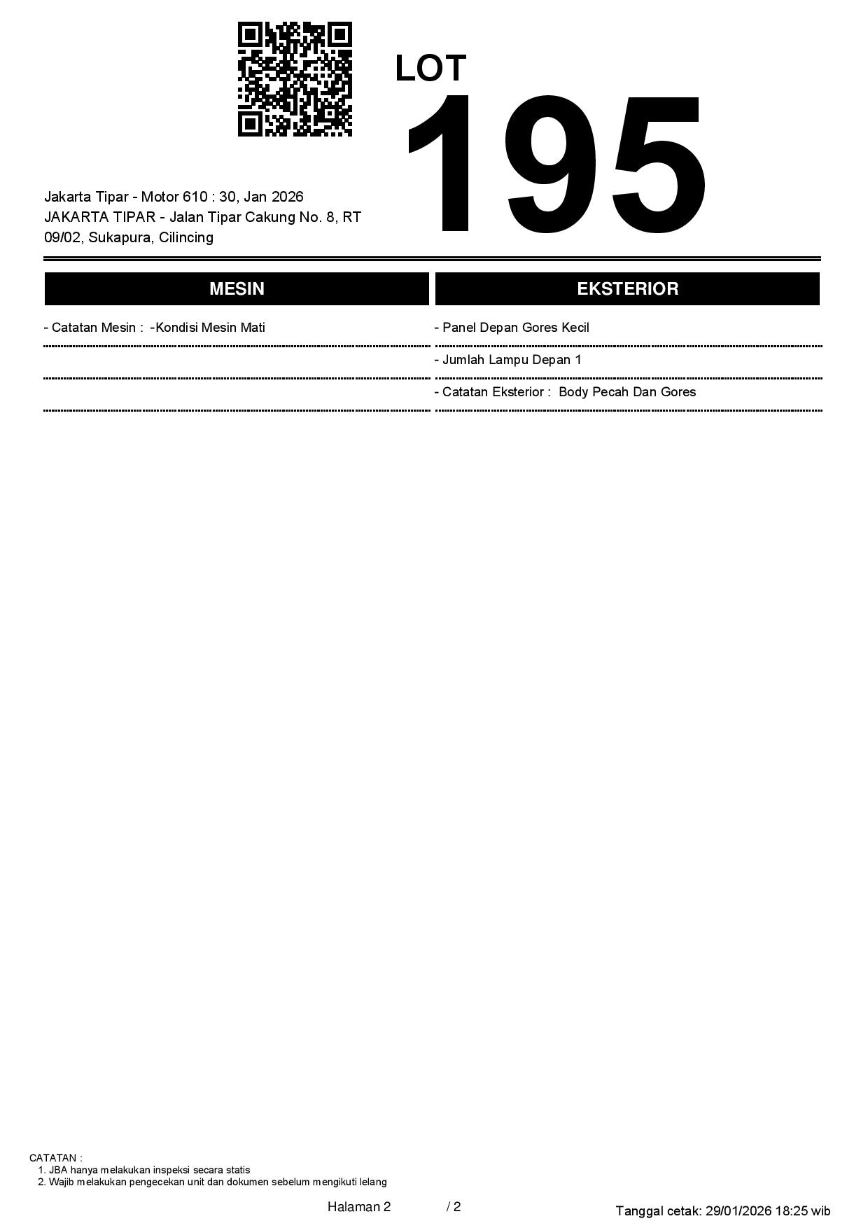 Tanggal Lelang: 30/01/2026 13.5:00 | WIB