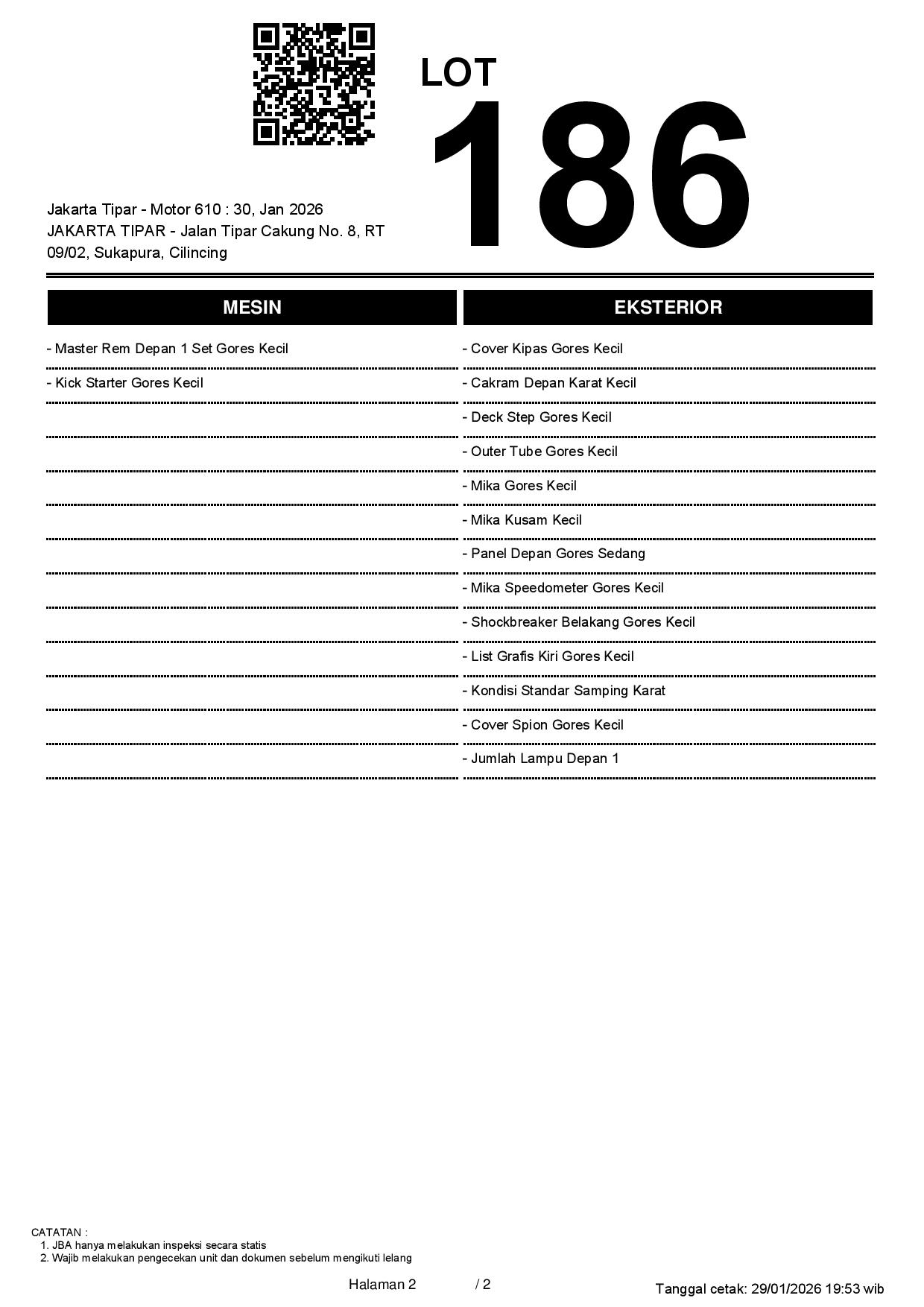 Tanggal Lelang: 30/01/2026 13.5:00 | WIB