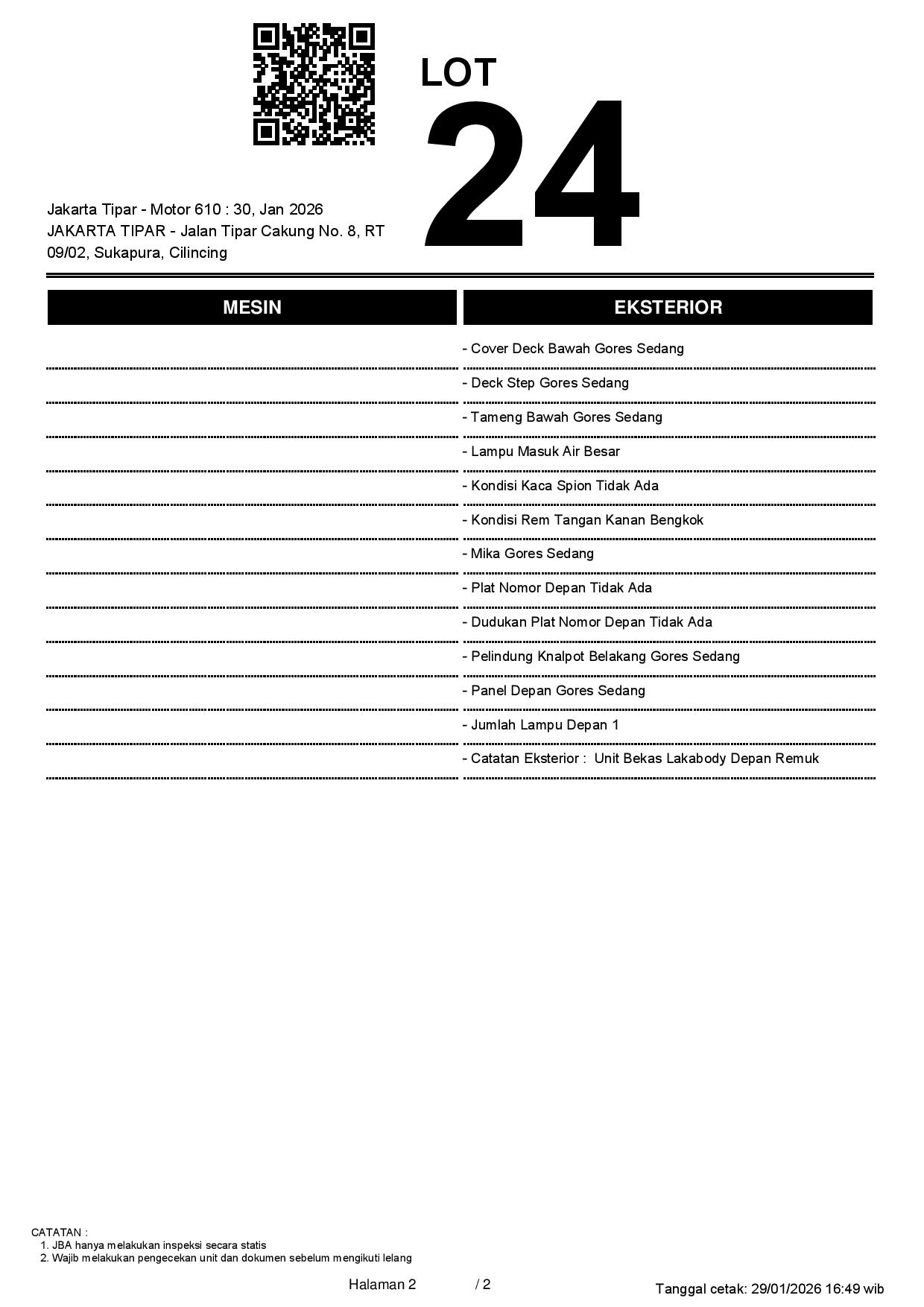 2. Peserta lelang wajib cek unit & dokumen