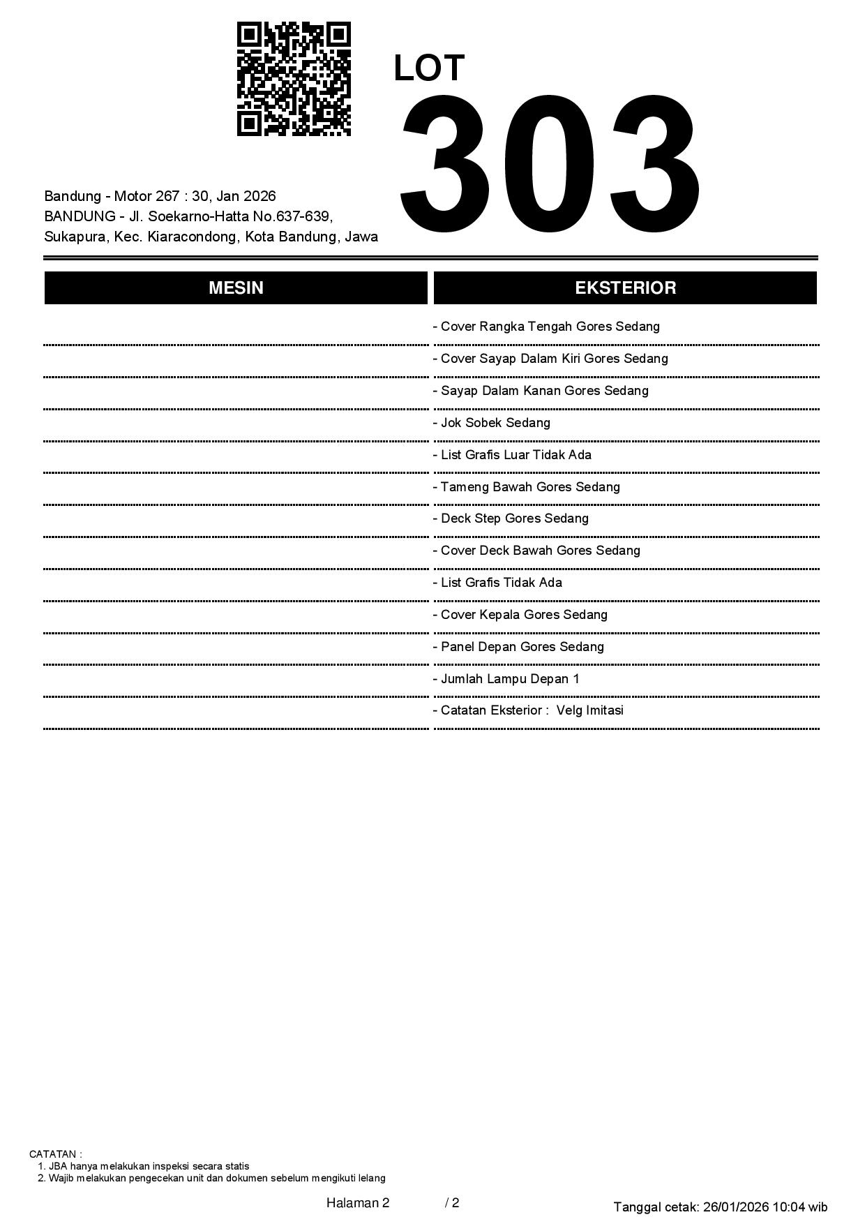 2. Peserta lelang wajib cek unit & dokumen