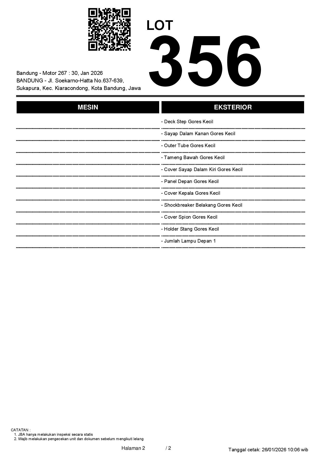 2. Peserta lelang wajib cek unit & dokumen