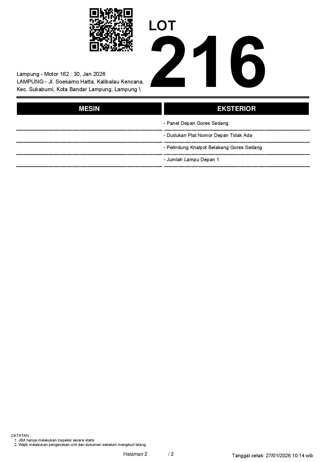 Tanggal Lelang: 30/01/2026 13.5:00 | WIB
