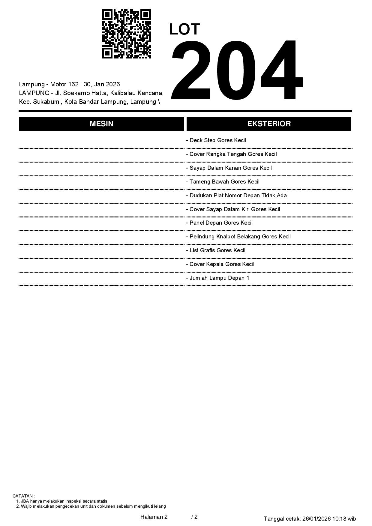 2. Peserta lelang wajib cek unit & dokumen