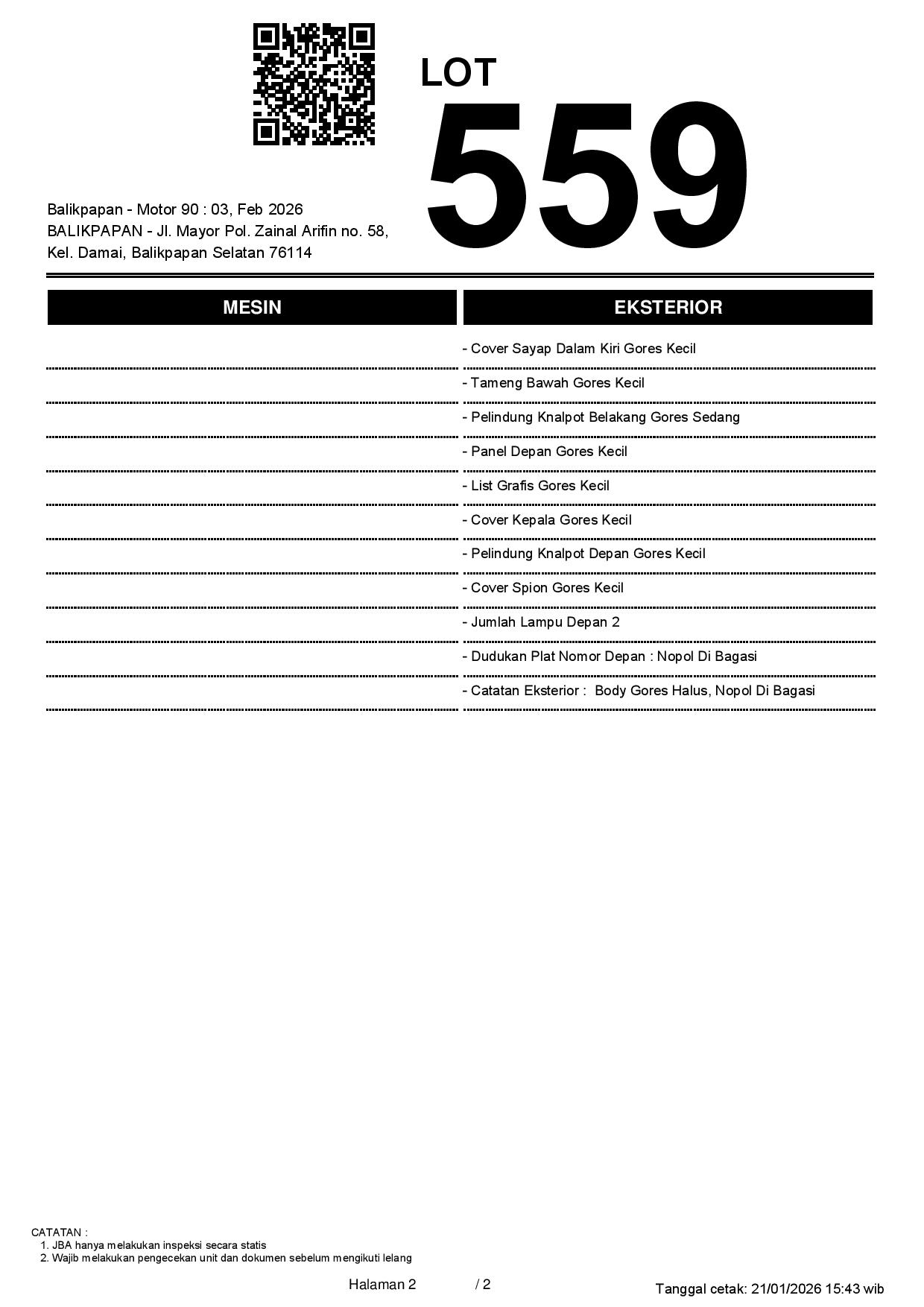 2. Peserta lelang wajib cek unit & dokumen