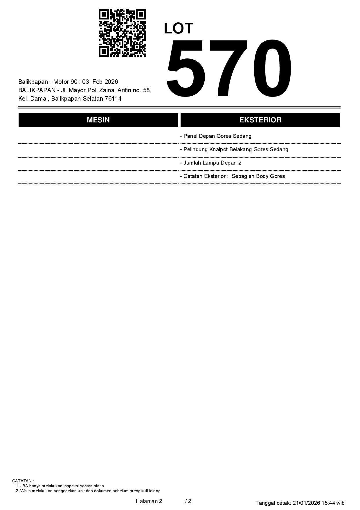 2. Peserta lelang wajib cek unit & dokumen
