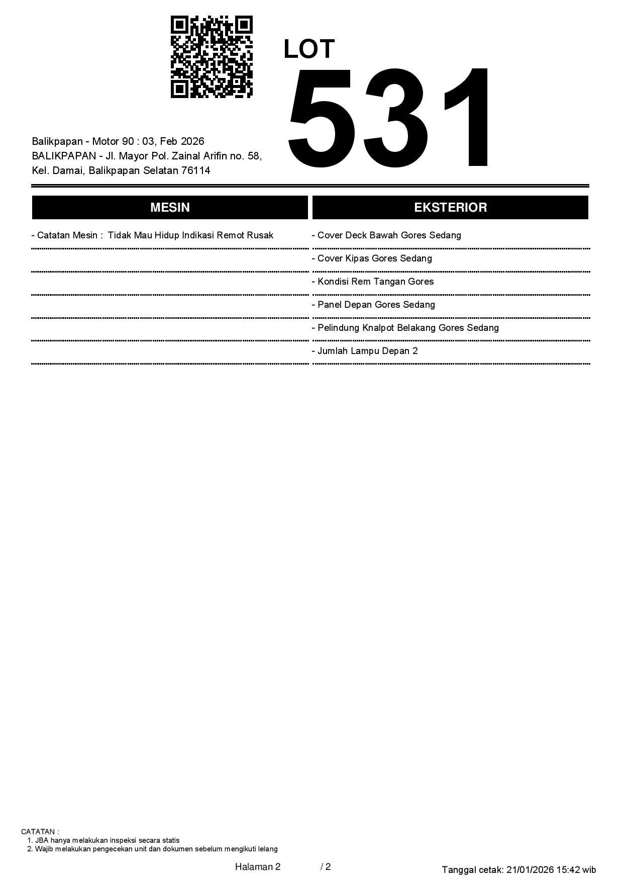 2. Peserta lelang wajib cek unit & dokumen