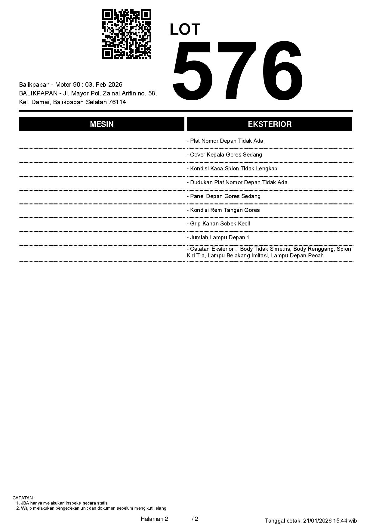 2. Peserta lelang wajib cek unit & dokumen