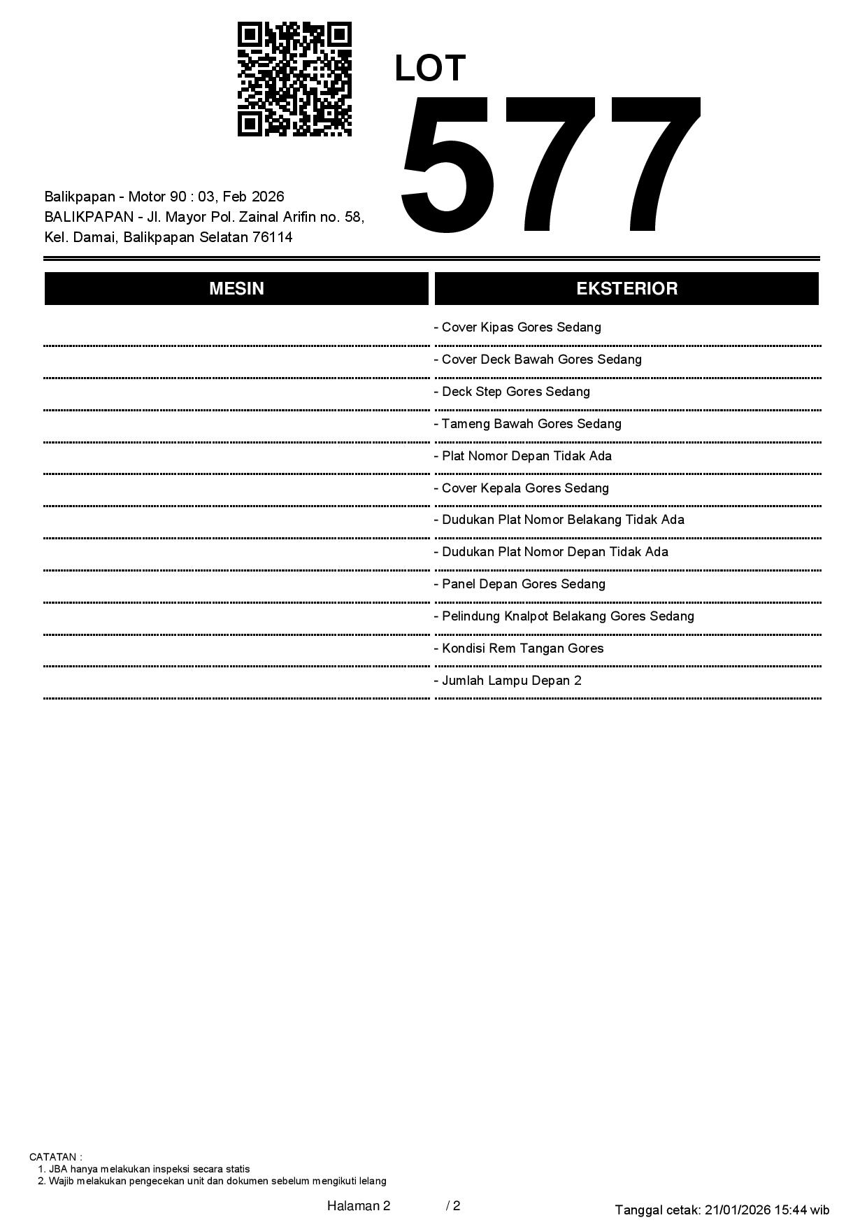 2. Peserta lelang wajib cek unit & dokumen