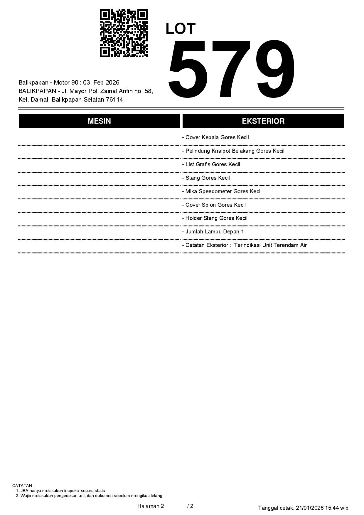 2. Peserta lelang wajib cek unit & dokumen